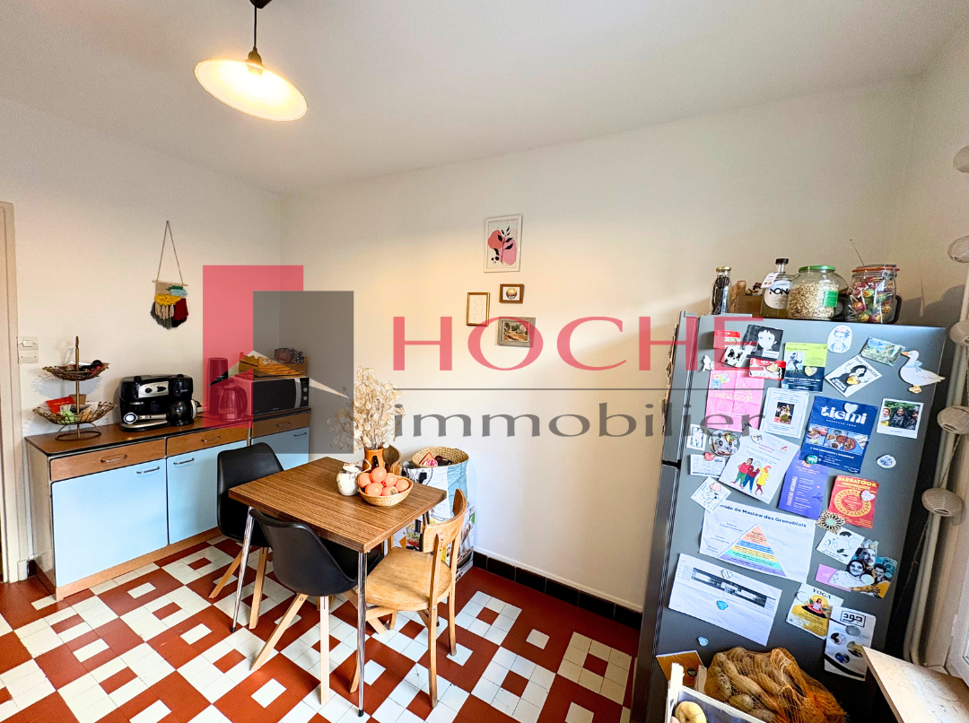 7 Rue du St-Eynard, FONTAINE, au rez-de-chaussée d'une petite maison en copropriété de 3 appartements, agréable 2 P + C de 50 m², avec hall d'entrée desservant une grande cuisine composée d'un évier, meuble haut et chaudière ; d'un grand séjour avec parquet et double exposition sud et ouest, grande chambre avec parquet et placard mural exposée plein ouest, salle-de-bain avec douche et lavabo, WC séparé. Le plus de l'appartement : un petit bout de jardin à quelques mètres de l'appartement, idéal pour les soirées d'été ! Appartement loué vide. Chauf. Individuel gaz. Disponible le 12 février.