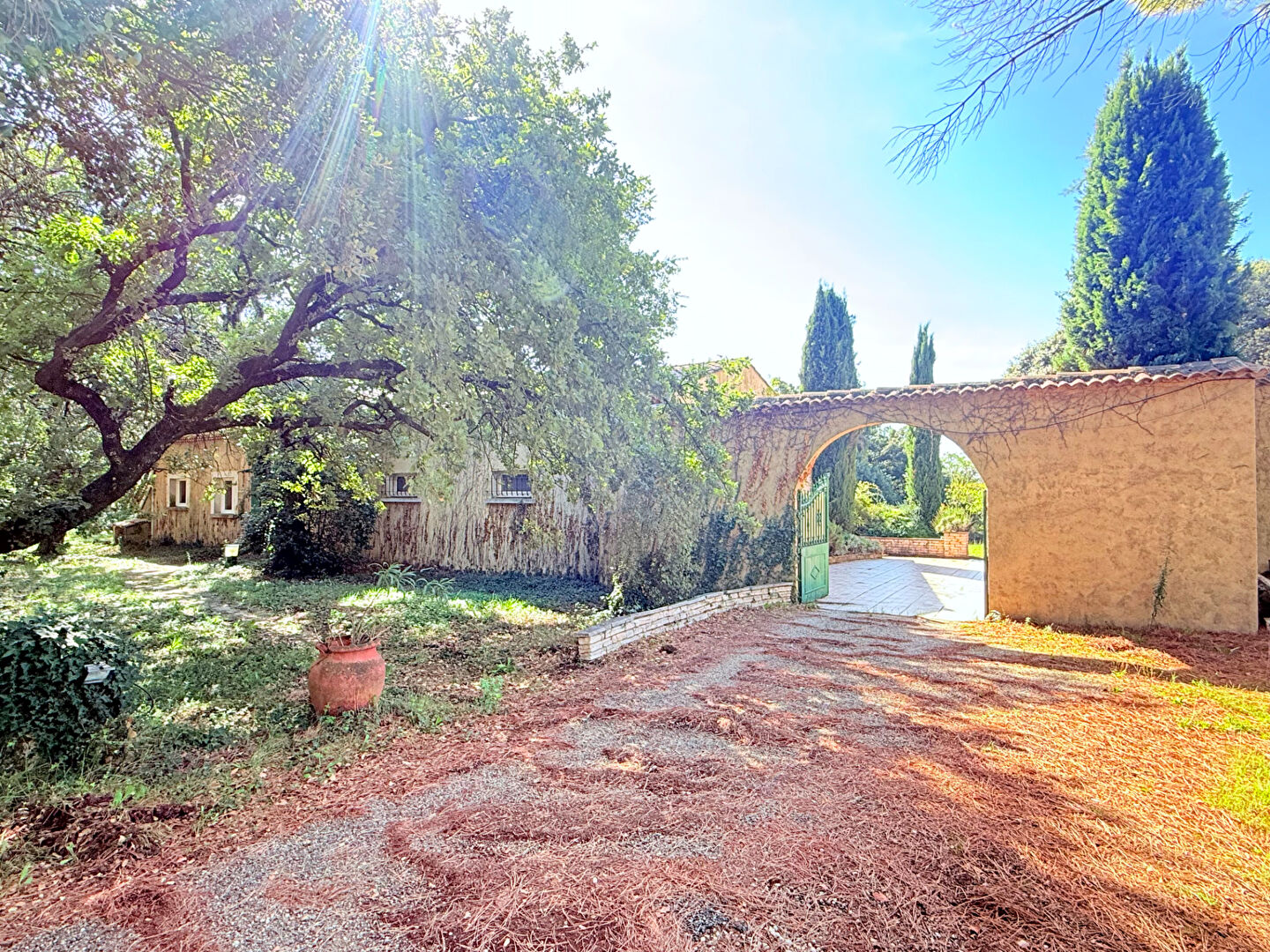 Dans un environnement recherché et au calme, découvrez cette villa de 1974 offrant 221 m² habitables sur un magnifique terrain arboré de 5000m² environ. Elle se compose d'un vaste séjour lumineux, d'une cuisine équipée spacieuse, d'un bureau (pouvant être transformé en chambre), ainsi que d'une agréable mezzanine. La maison est organisée en deux ailes : L'espace parental avec une chambre, une salle de bains et un bureau. L'espace familial comprenant 4 chambres, une salle de bains et des pièces de service. Vous serez séduit par son jardin d'hiver aux lignes arrondies, donnant sur la piscine couverte. Côté pratique : garage, terrasse couverte, grand parc en partie planté de chênes truffiers. Des travaux de rénovation, la mise en place d'un système de chauffage adapté et la réhabilitation de l'assainissement individuel seront à prévoir