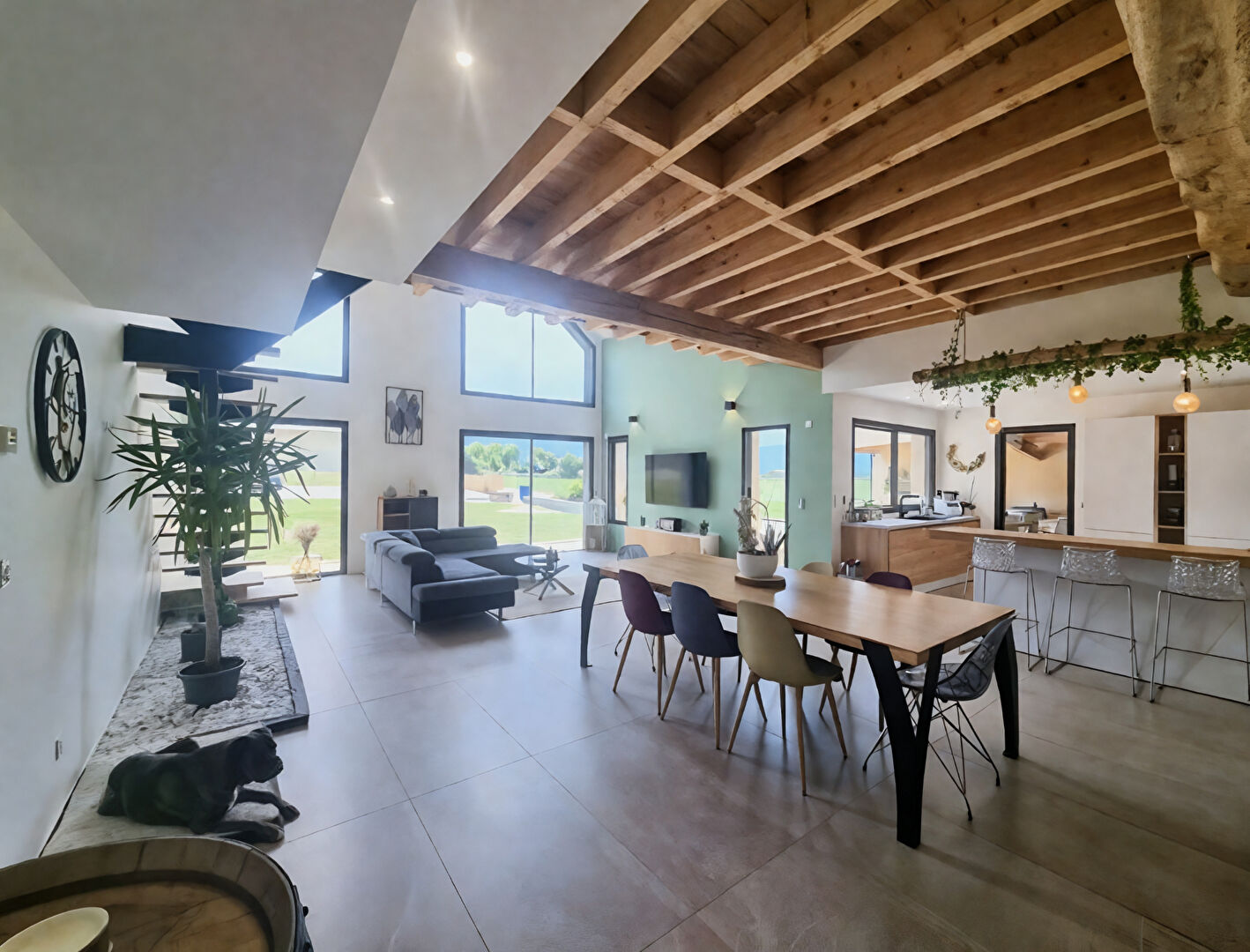 Dans un cadre privilégié et avec une vue sur la chaîne des Pyrénées, cette maison de 2023 vous séduira par son architecture moderne et audacieuse alliant toit plat, ardoise et matériaux haut de gamme ! Sa façade à la couleur audacieuse et ses pierres naturelles affirment son caractère unique dans le secteur et apporte une touche de modernité et d'originalité remarquable ! Dès l'entrée, on est immédiatement subjugué par la luminosité exceptionnelle qui inonde la pièce de vie de près de 70 m² ouverte sur une cuisine contemporaine, offrant un espace chaleureux et convivial. Cette pièce de vie se prolonge harmonieusement par une grande terrasse couverte, idéale pour profiter du panorama et des repas en extérieur en toute saison. On retrouve sur le rez-de-chaussée, un grand cellier, une suite parentale et un WC. A l'étage, la partie nuit est complétée par deux chambres, dont une avec dressing, une salle d'eau, un WC et une mezzanine pouvant faire office de bureau ! Les annexes sont un vrai atout avec plus de 80 m² au total comprenant un garage fermé de et un carport parfaits pour abriter plusieurs véhicules. Côté extérieur, des finitions sont en cours de réalisation et d'autres seront à terminer par vos soins (les matériaux sont sur place). On ne vous en dévoilera pas plus... un bien rare dans le neuf sur ce secteur, alors nous attendons votre appel pour organiser une visite !