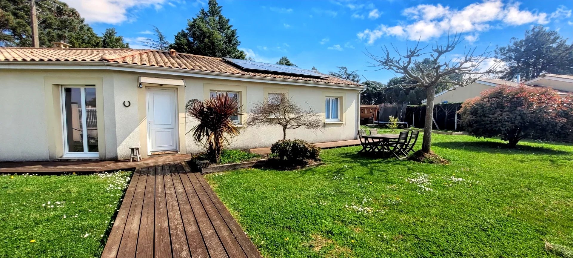 Cette maison de construction traditionnelle achevée en 2007 est une pépite, posée sur 1107m² de parc paysager, à quelques minutes de la gare, et seulement 15mn de Libourne et gare TGV