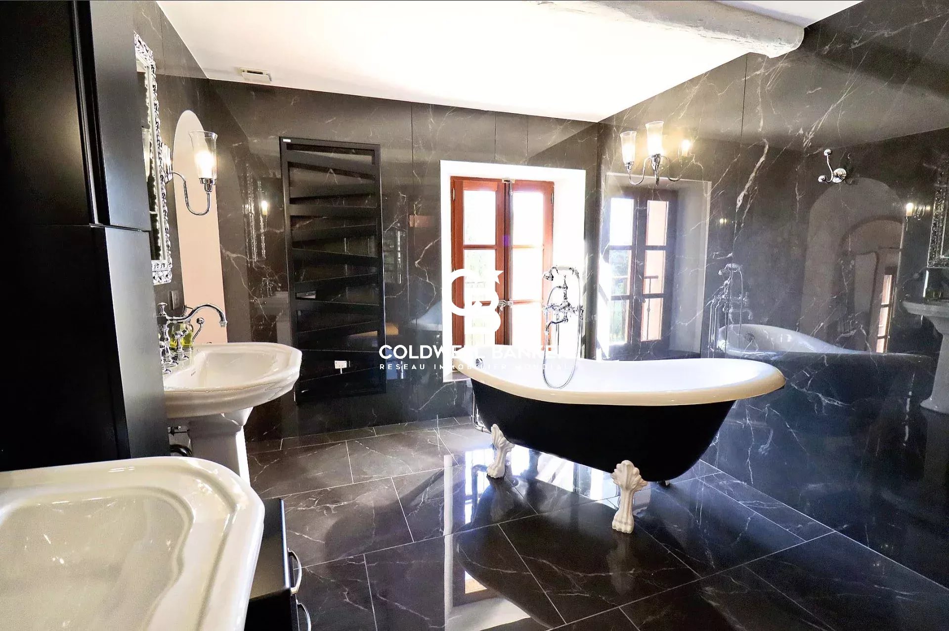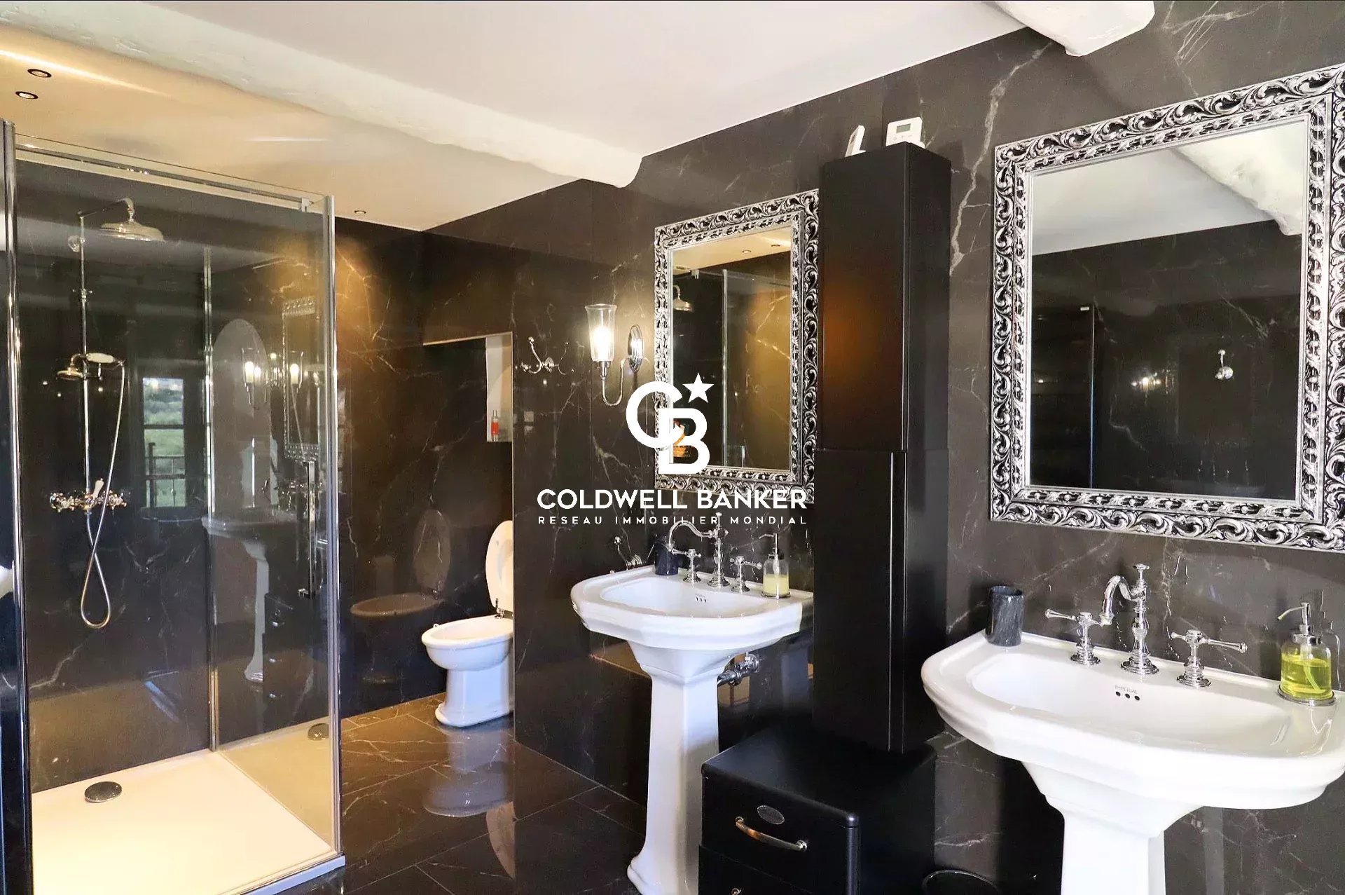 Attorno a uno scrigno di verde alberato, splendida dimora di lusso, 11 vani, 286 m², distribuiti su 3 livelli, senza alcun affaccio diretto, esposta a Sud-Ovest. Volumi generosi e grande comfort caratterizzano questa residenza, ristrutturata con eleganza. 5 camere spaziose, tutte en suite, con letti king size e magnifiche sale da bagno donano fascino a questa proprietà, che un tempo appartenne a icone del cinema e dell’alta ristorazione stellata. Lo spirito “boudoir” domina negli interni, con salotti privati che garantiscono intimità e riservatezza. Ampio soggiorno e sala da pranzo con parquet in legno – camino artigianale – grande cucina in stile contemporaneo con piastrelle dal design esclusivo – sala cinema. Pompa di calore, aria condizionata canalizzata, porte e armadi in legni pregiati, pavimento in travertino, travi a vista per un’atmosfera calda e accogliente. All’esterno, un vasto parco illuminato di 10.200 m² con giardino alla francese, comprendente un uliveto produttivo alimentato dalla sorgente della proprietà. Una splendida piscina riscaldata con ampio solarium – sala da pranzo all’aperto con cucina – area relax coperta – cantina con spazio degustazione: elementi che impreziosiscono ulteriormente questa Bastide. Muri e pozzo in pietra tagliata, numerosi posti auto completano l’offerta. Un fascino irresistibile e un allestimento raffinato, luminoso grazie alle grandi finestre, rendono questa proprietà di prestigio tra le più ambite: assolutamente da vedere…