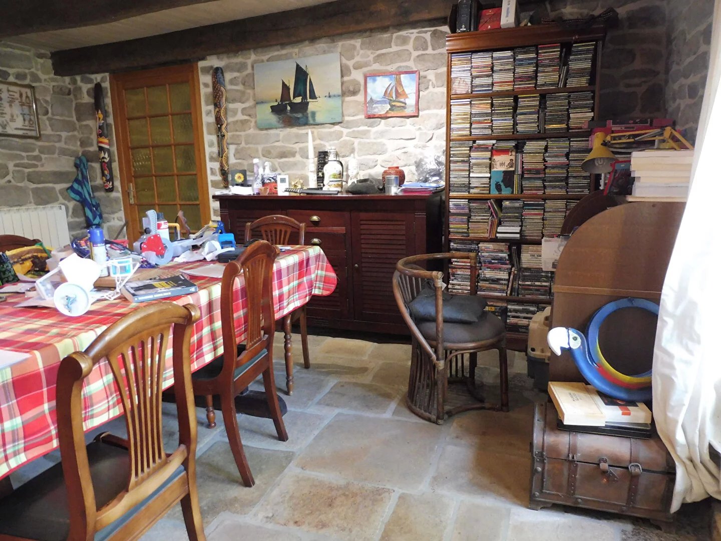 En campagne, propriété rénovée de 1747, en pierres sous ardoises. le charme de l'ancien... La maison comprend en rdc: un salon/séjour en pierres apparentes poele à pelets sans électricité, cuisine aménagée et cuisinière GODIN, buanderie, wc, salle d'eau. Une ancienne creche de 49m² entièrement rénovée (maçonnerie, charpente, toiture, électricité, poele à bois). Au premier : 2 chambres, salle d'eau, wc, Au second: 2 chambres, wc Divers: grand carport à l'arrière, remise en pierres, terrasse