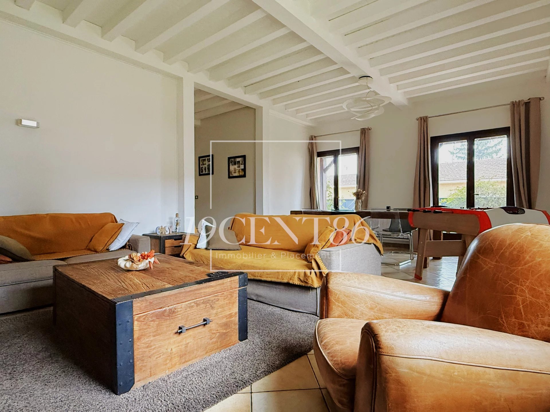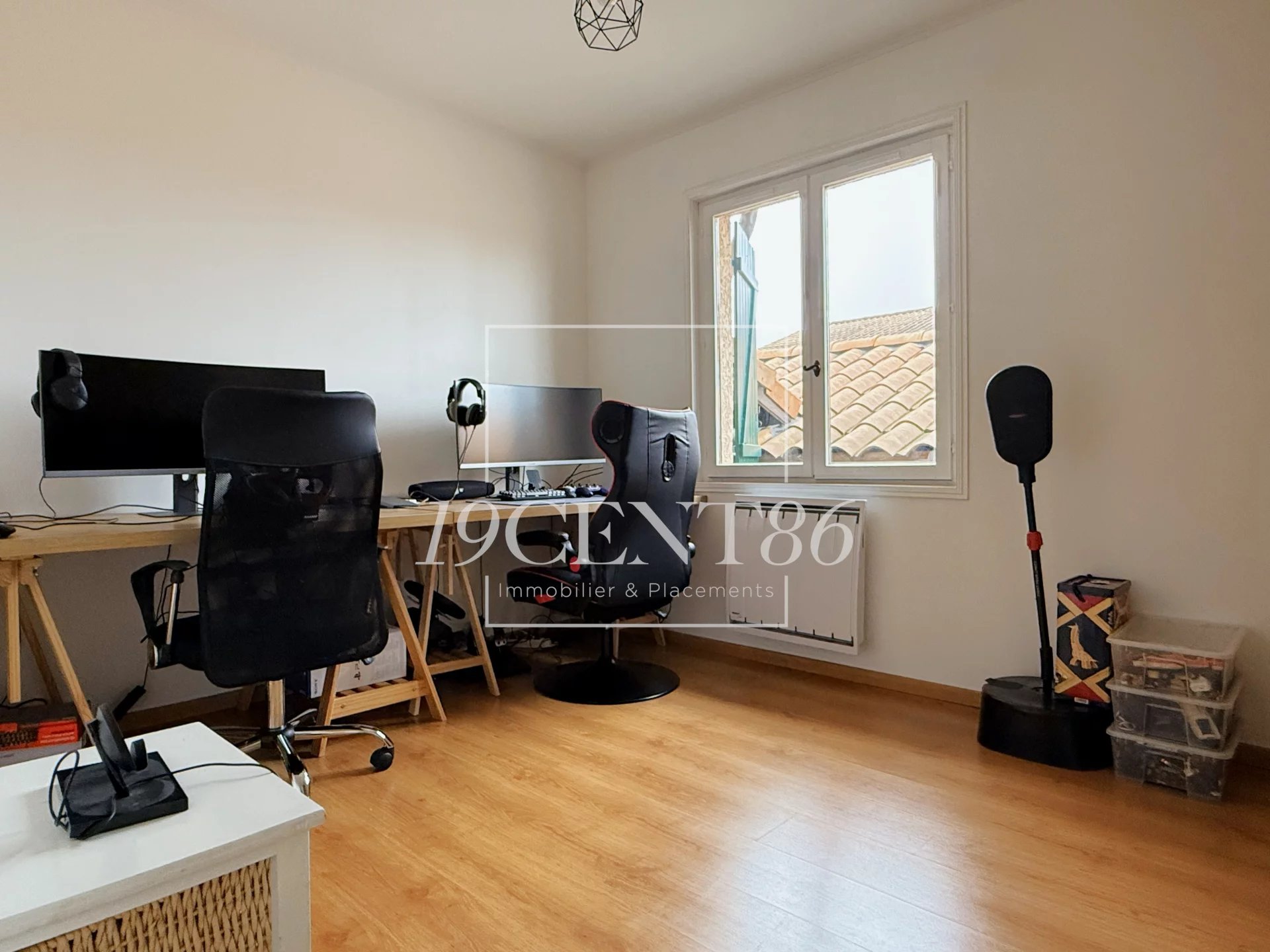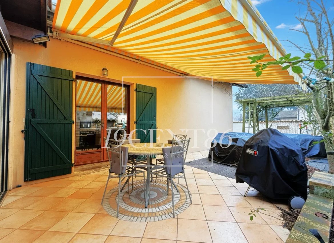 69780 MIONS – SECTEUR JOLIOT CURIE - MAISON DE 184,8 M² SUR TERRAIN CLOS ET ARBORE DE 419 M². L’Agence 19CENT86 Immobilier & Placements vous propose cette jolie maison, mitoyenne par le garage, de 146,5 m² + véranda de 38,3 m² + garage, construite dans les années 80, sur un terrain clos de 419 m². La maison est accessible par une impasse privée desservant 4 autres maisons et fermée par un portail électrique. Elle se compose de 3 demi-niveaux, le premier en rez-de-jardin, dispose d’une entrée avec placard, d’un séjour de 34,2 m² exposé Sud et Est, d’une cuisine équipée de 14,4 m² (possible US) exposée Ouest et d’une salle d’eau avec WC. Le second demi niveau accessible en descendant quelques marches, offre une chambre, une buanderie et un accès au garage de 34 m². Le 3ème demi-niveau bénéficie de 4 chambres avec placard, d’une salle de bains, d’un WC et d’un accès aux combles pouvant être aménagées.