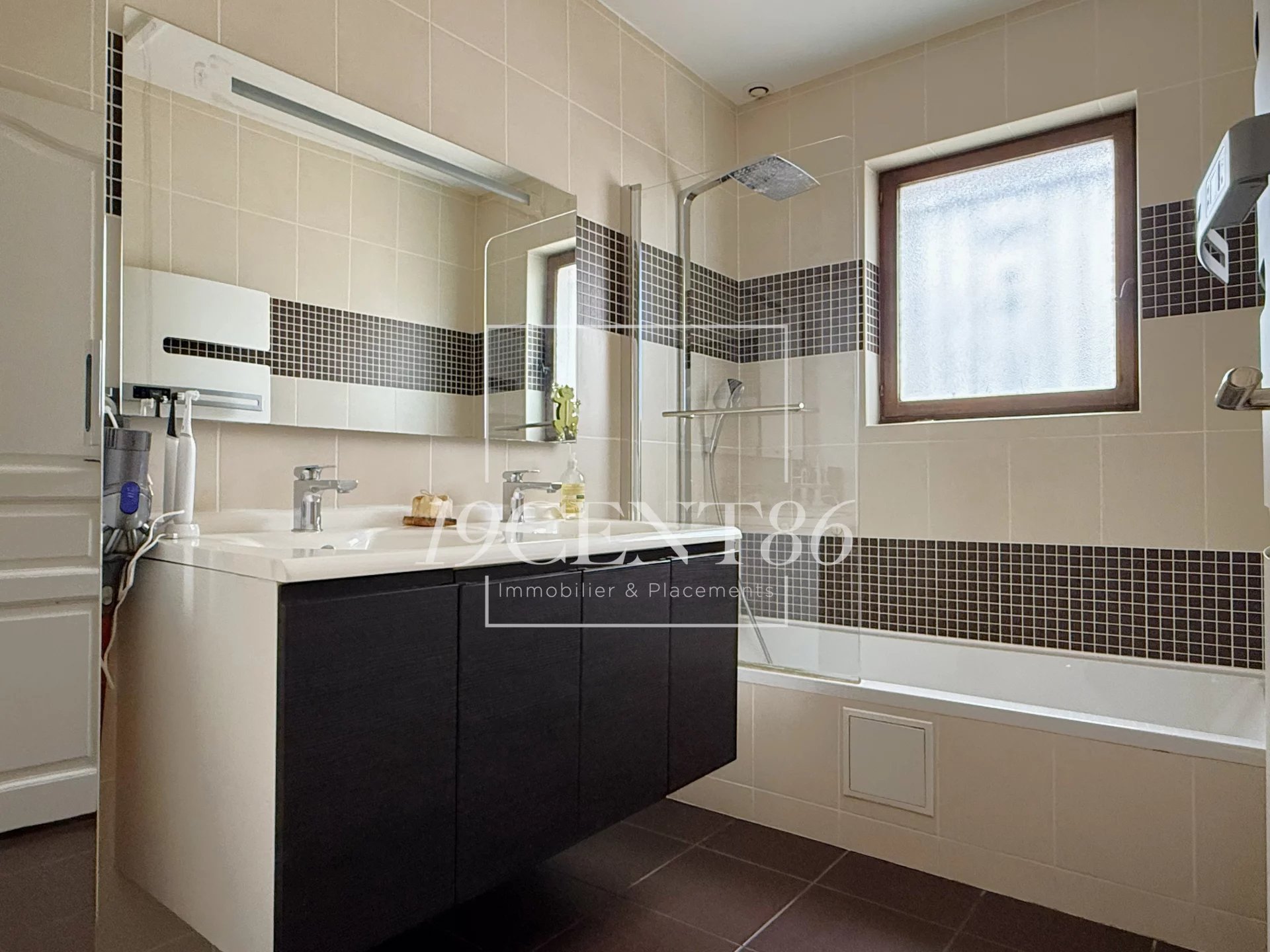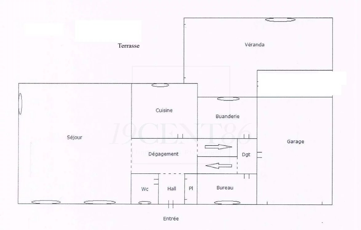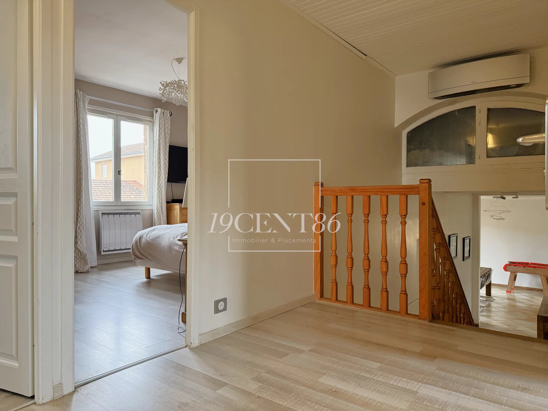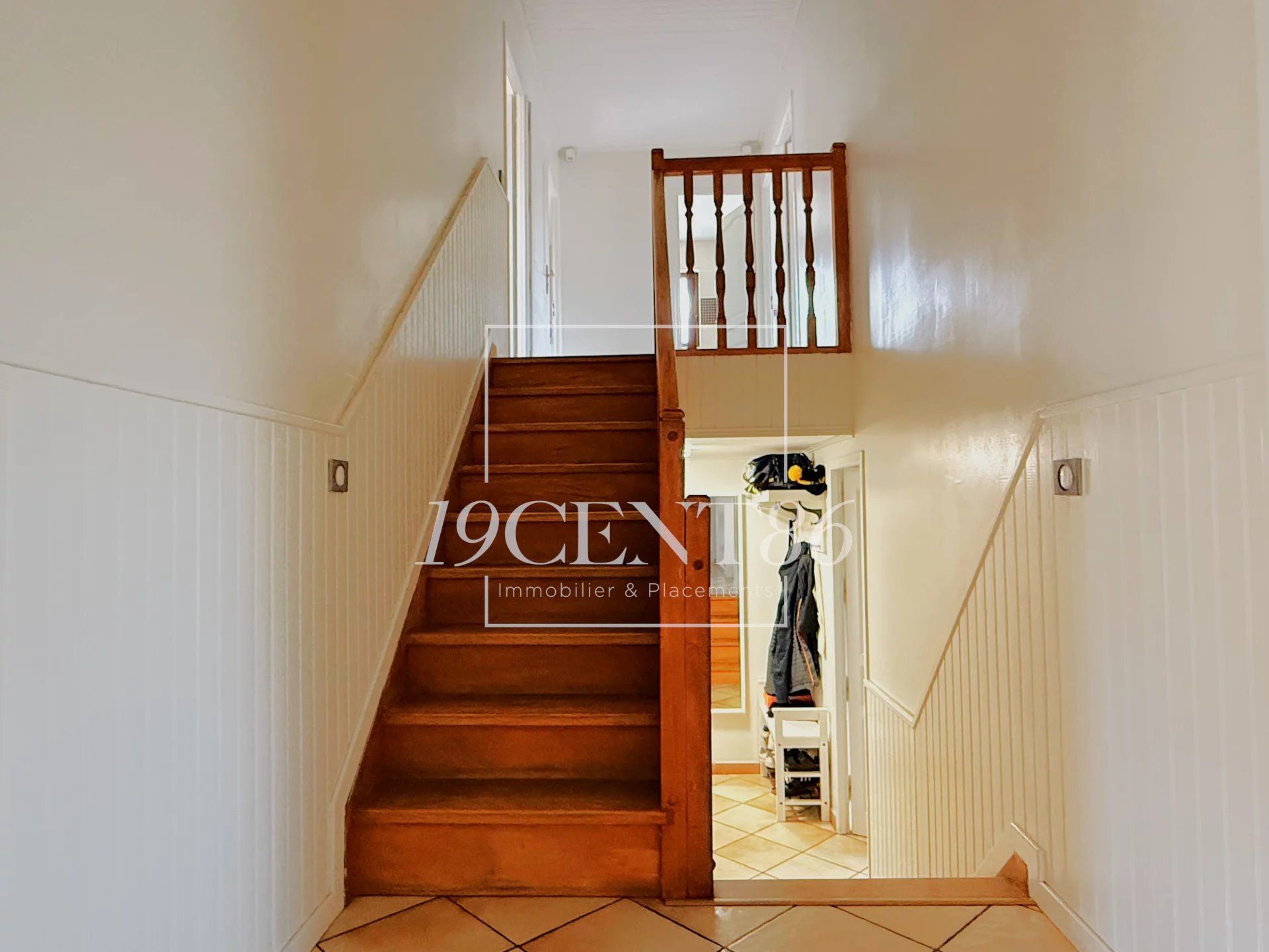 69780 MIONS – SECTEUR JOLIOT CURIE - MAISON DE 184,8 M² SUR TERRAIN CLOS ET ARBORE DE 419 M². L’Agence 19CENT86 Immobilier & Placements vous propose cette jolie maison, mitoyenne par le garage, de 146,5 m² + véranda de 38,3 m² + garage, construite dans les années 80, sur un terrain clos de 419 m². La maison est accessible par une impasse privée desservant 4 autres maisons et fermée par un portail électrique. Elle se compose de 3 demi-niveaux, le premier en rez-de-jardin, dispose d’une entrée avec placard, d’un séjour de 34,2 m² exposé Sud et Est, d’une cuisine équipée de 14,4 m² (possible US) exposée Ouest et d’une salle d’eau avec WC. Le second demi niveau accessible en descendant quelques marches, offre une chambre, une buanderie et un accès au garage de 34 m². Le 3ème demi-niveau bénéficie de 4 chambres avec placard, d’une salle de bains, d’un WC et d’un accès aux combles pouvant être aménagées.