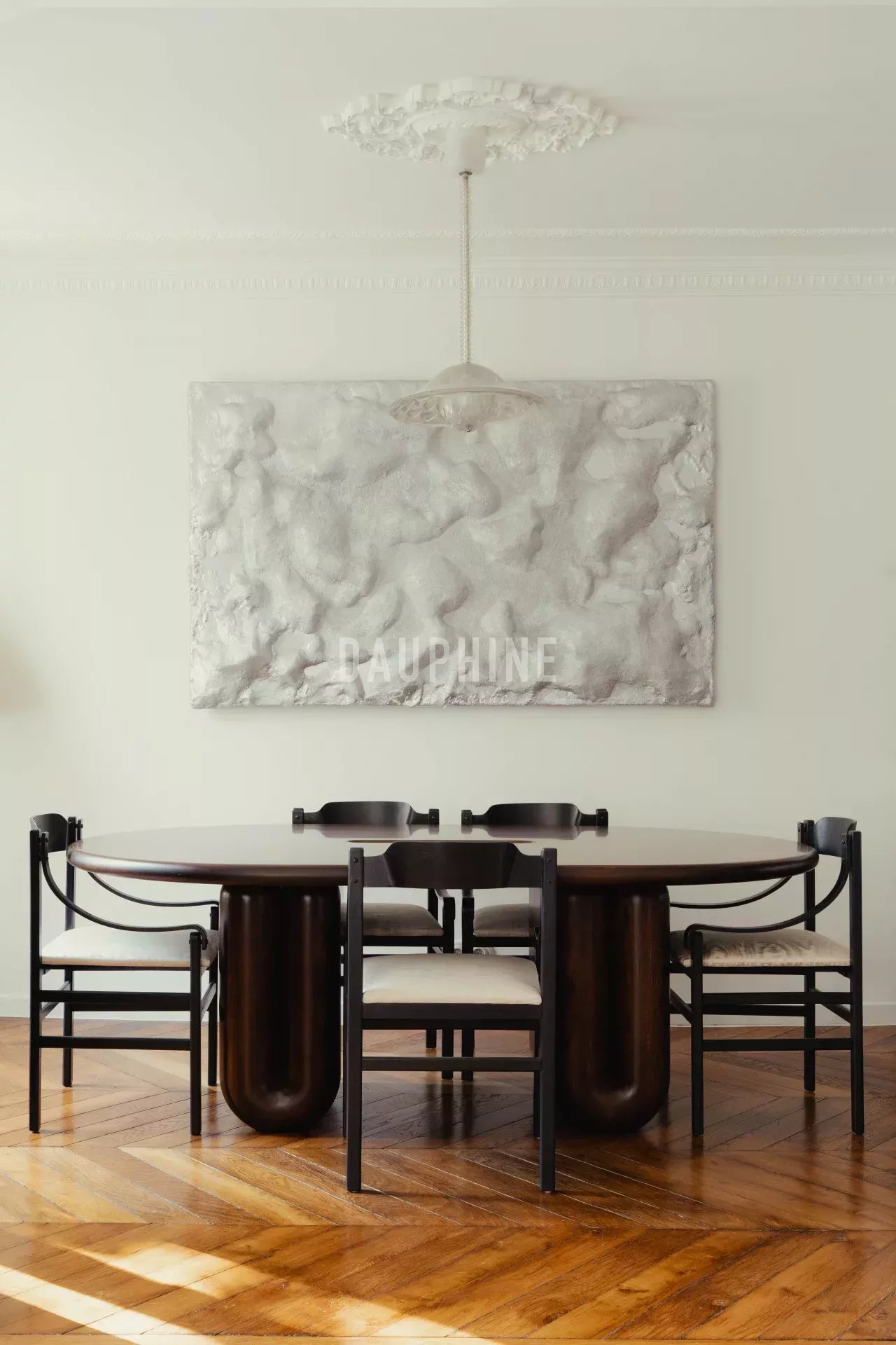 Entièrement repensé à l’issue d’une rénovation complète, l’appartement conjugue charme de l’ancien et écriture contemporaine, avec une attention particulière portée aux matières et aux finitions. Moulures, parquet en point de Hongrie d’époque et cheminée en marbre dialoguent avec un mobilier choisi avec justesse, dans un esprit libre et intemporel.
