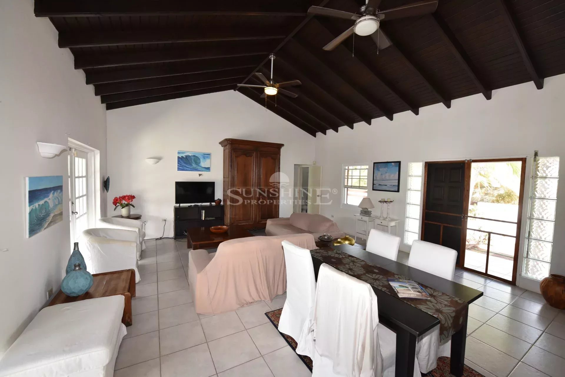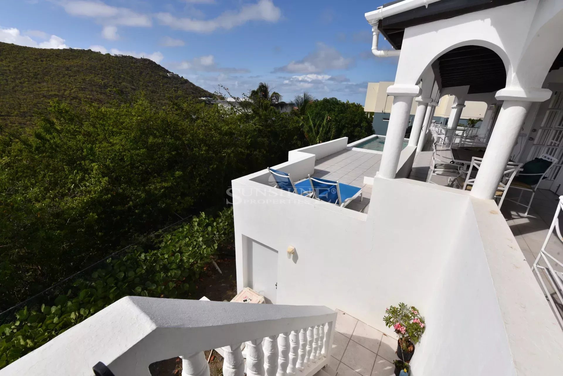 Located in the 24/7 secured community of Dawn Beach Estate, you will find this 3 bedroom, 2.5 bathroom villa available for rent.