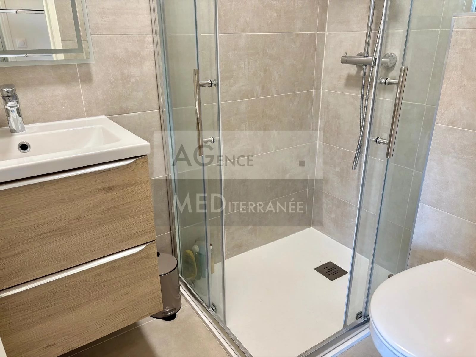 Juan les Pins - proche plages : En étage élevé avec ascenseur, beau STUDIO de 25,51 m² + balcon de 5 m² profitant d'une belle vue dégagée sans vie à vie. Très lumineux et en bon état intérieur, il dispose de la climatisation réversible. Faibles charges. Idéal pour un pied-à-terre ou un investissement locatif !