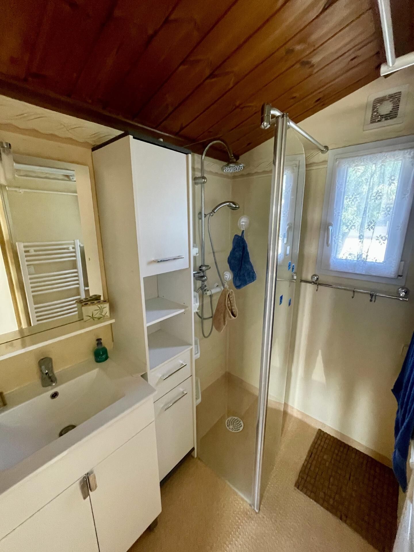 Le terrain abrite un chalet de 60 m² offrant tout le confort nécessaire. Avec 3 chambres, 1 salles d'eau, cuisine aménagé et équipé, une grande pièce de vie, Véranda, Cellier. Ce bien saura satisfaire les exigences en termes de praticité et de confort.