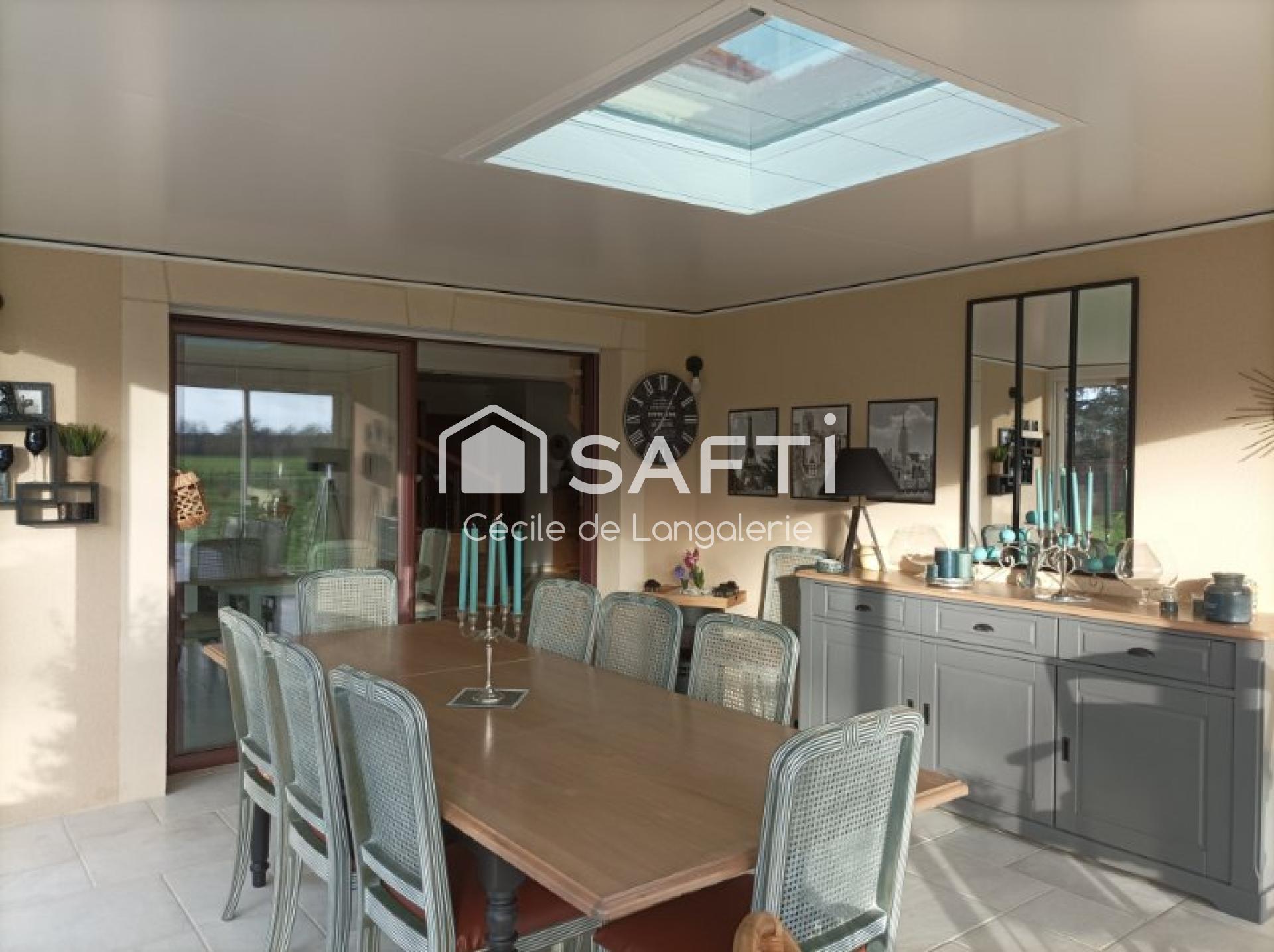 Cécile de langalerie, votre conseillère en immobilier safti vous présente cette tres belle maison contemporaine à 5mn du blanc (36), proche de toutes commodités (écoles, commerces, médecins ),au rdc : entrée donnant sur l'espace salle a manger, cuisine amenagee / equipee ouverte, grand salon avec baies vitrées, veranda avec puits de lumière. Arriere cuisine aménagée et un garage / atelier. Bureau, suite parentale avec douche à l'italienne et son vaste dressing, wc séparés. À l'etage : 3 chambres et une salle de douche, wc séparés, bel espace pouvant servir d'espace de jeux, coin tv et couchage d'appoint. À l'extérieur : grand jardin clos, carport, appentis, garage, terrasse. Les plus : grandes baies vitrées, chauffage par le sol et / ou poêle à bois, adoucisseur d'eau, fosse septique individuelle récente, terrasse carrelée plein sud. Aucuns travaux a prevoir - etat impeccable. Les informations sur les risques auxquels ce bien est exposé sont disponibles sur le site géorisques : www.georisques.gouv.frprix de vente : 349 900 ¤honoraires charge vendeurcontactez votre conseiller safti : cécile de langalerie, tél. : 06 51 47 85 44, e-mail : cecile.delangalerie@safti.fr - ei - agent commercial immatriculé au rsac de châteauroux sous le numéro 537 960 239.Informations LOI ALUR : Honoraires charge vendeur. (gedeon_26118_31421847)