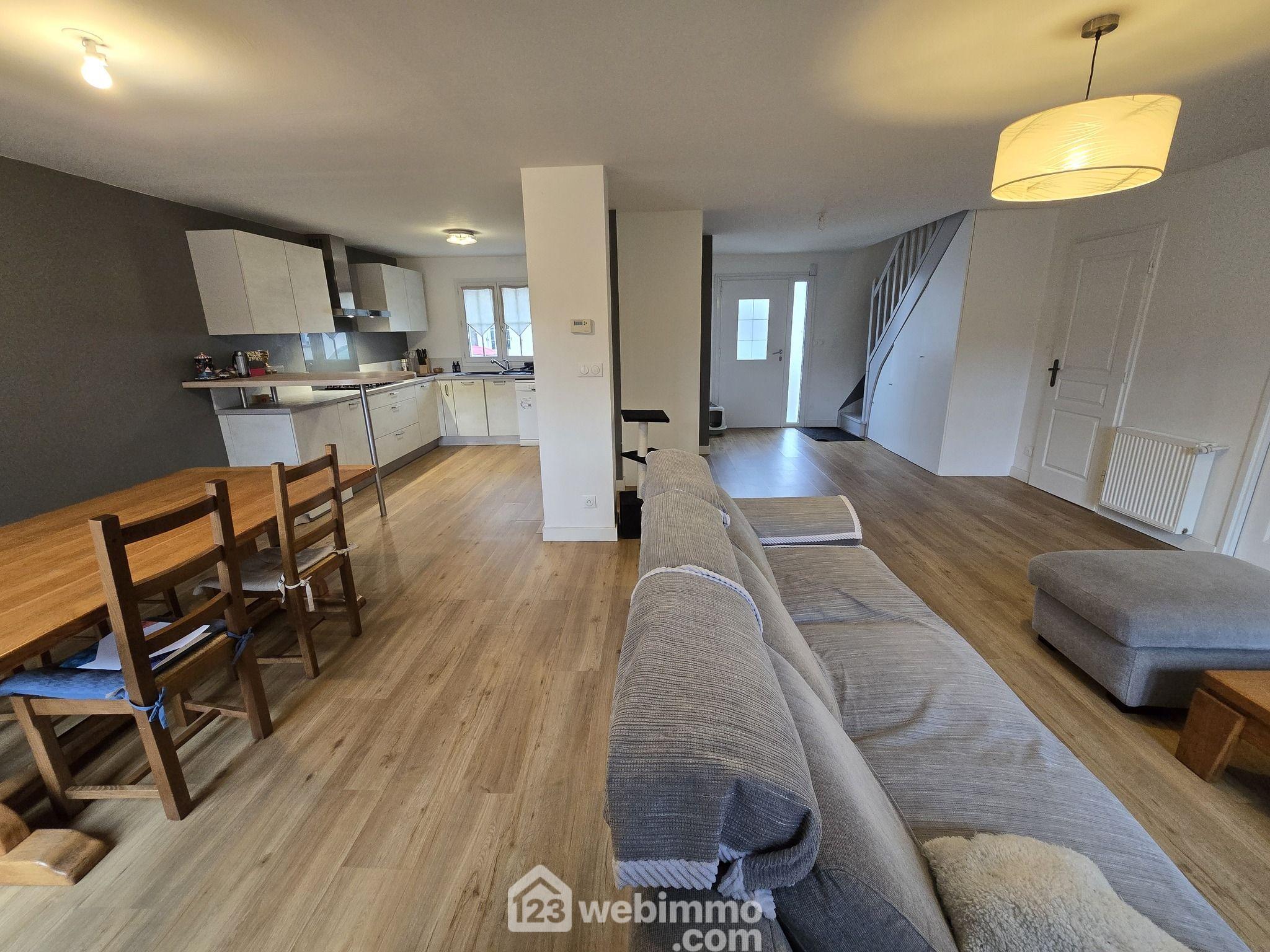 La maison se compose d'une belle pièce de vie lumineuse, ouverte sur la cuisine, offrant un espace convivial et fonctionnel.