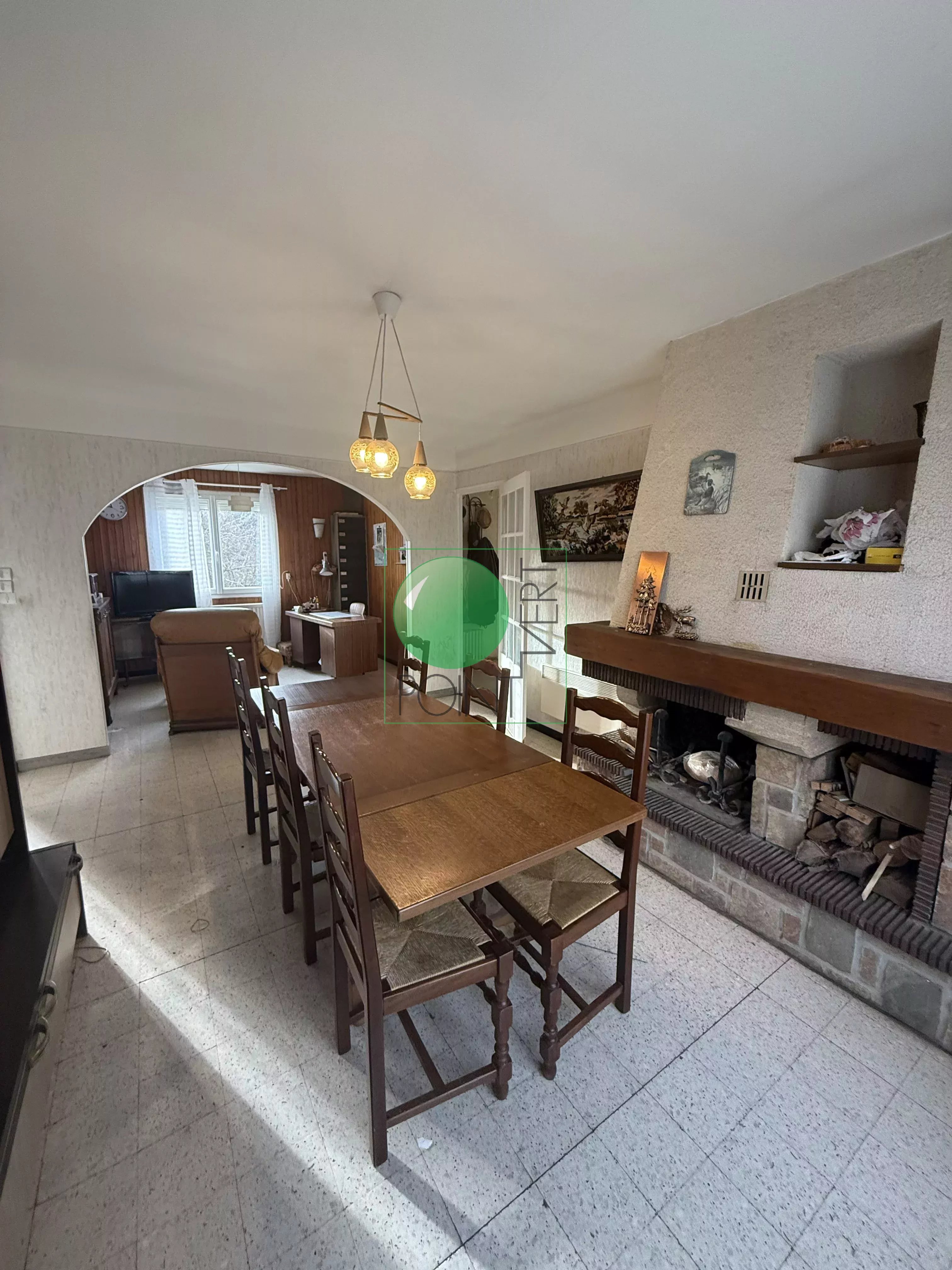 Une maison de 6 pièces sur sous-sol total surélevé comprenant: au rez-de-chaussée, une entrée, un séjour/salon avec cheminée ouverte, une cuisine aménagée et équipée, 2 chambres, une salle d'eau et un WC. À l'étage, un dégagement desservant 2 chambres en enfilade. De plus, un sous-sol total avec garage, chaufferie, buanderie et cave. L'ensemble est à rénover. Le tout sur environ 664 m² de terrain.
