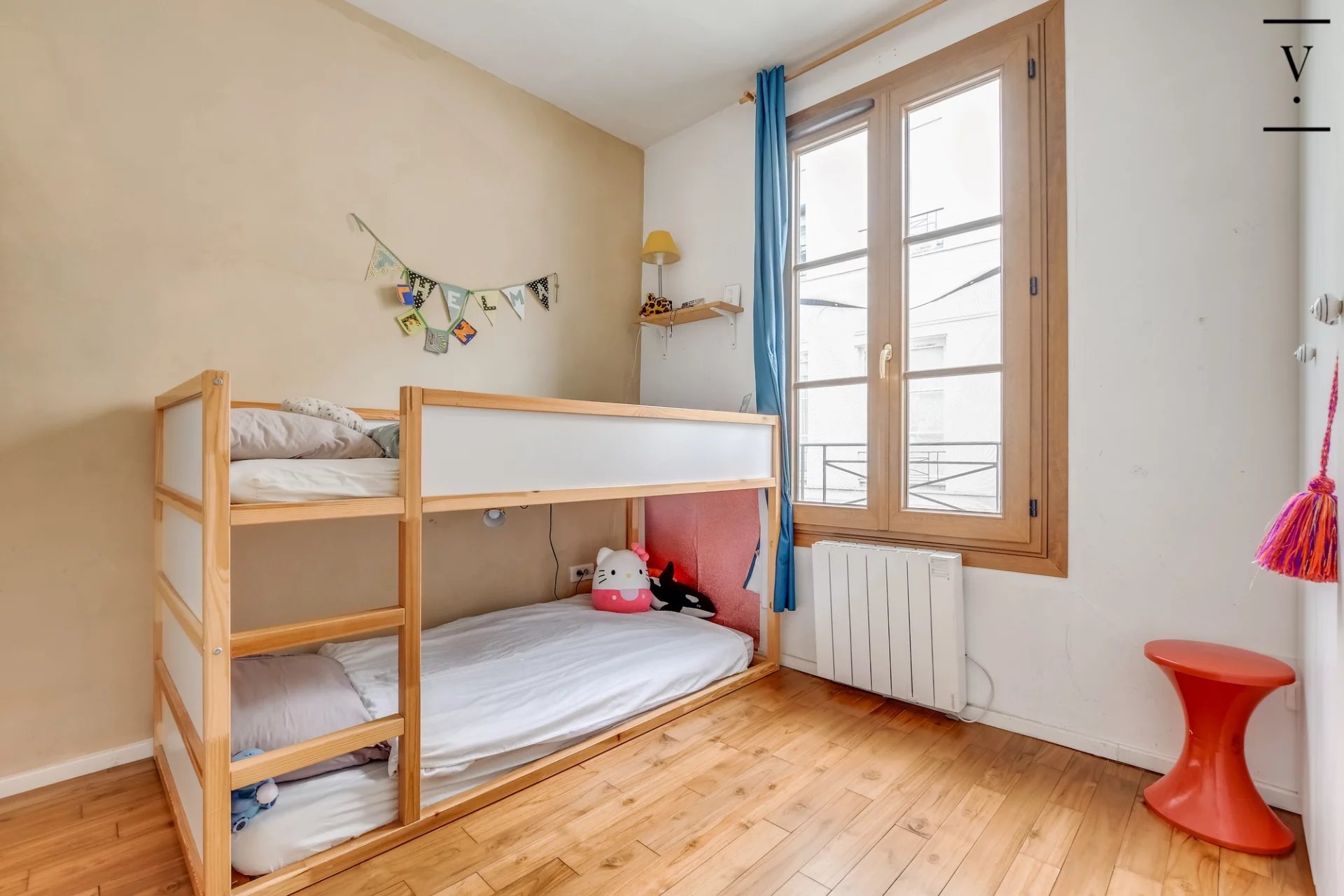 Au sein d'une jolie cour pavée et arborée, au coeur du Faubourg Saint Antoine, nous vous proposons ce ravissant appartement de 79,38m2. Cet appartement est situé au 3ème étage avec ascenseur et se compose d'une entrée, d'une belle pièce à vivre avec cuisine équipée ouverte, de deux chambres, d'une salle de bains avec toilettes et de nombreux rangements. Calme absolu pour ce bien familial ed charme.