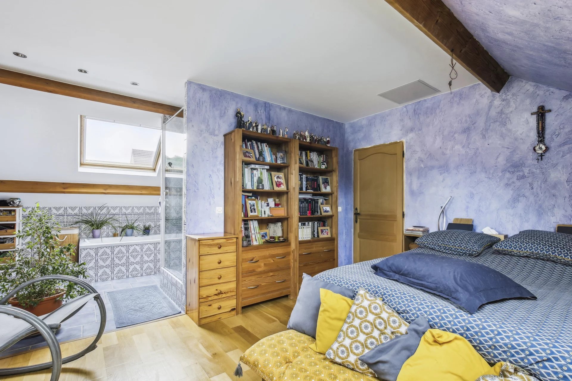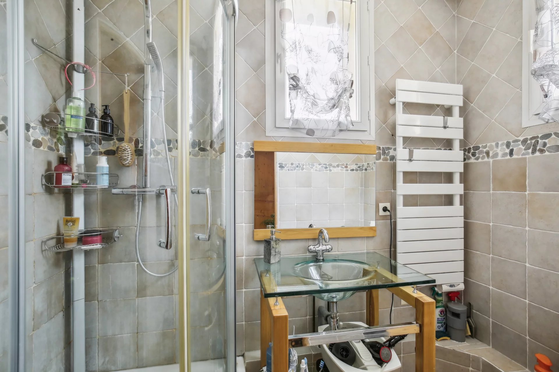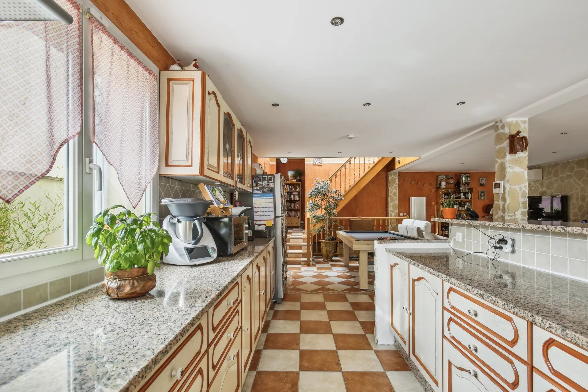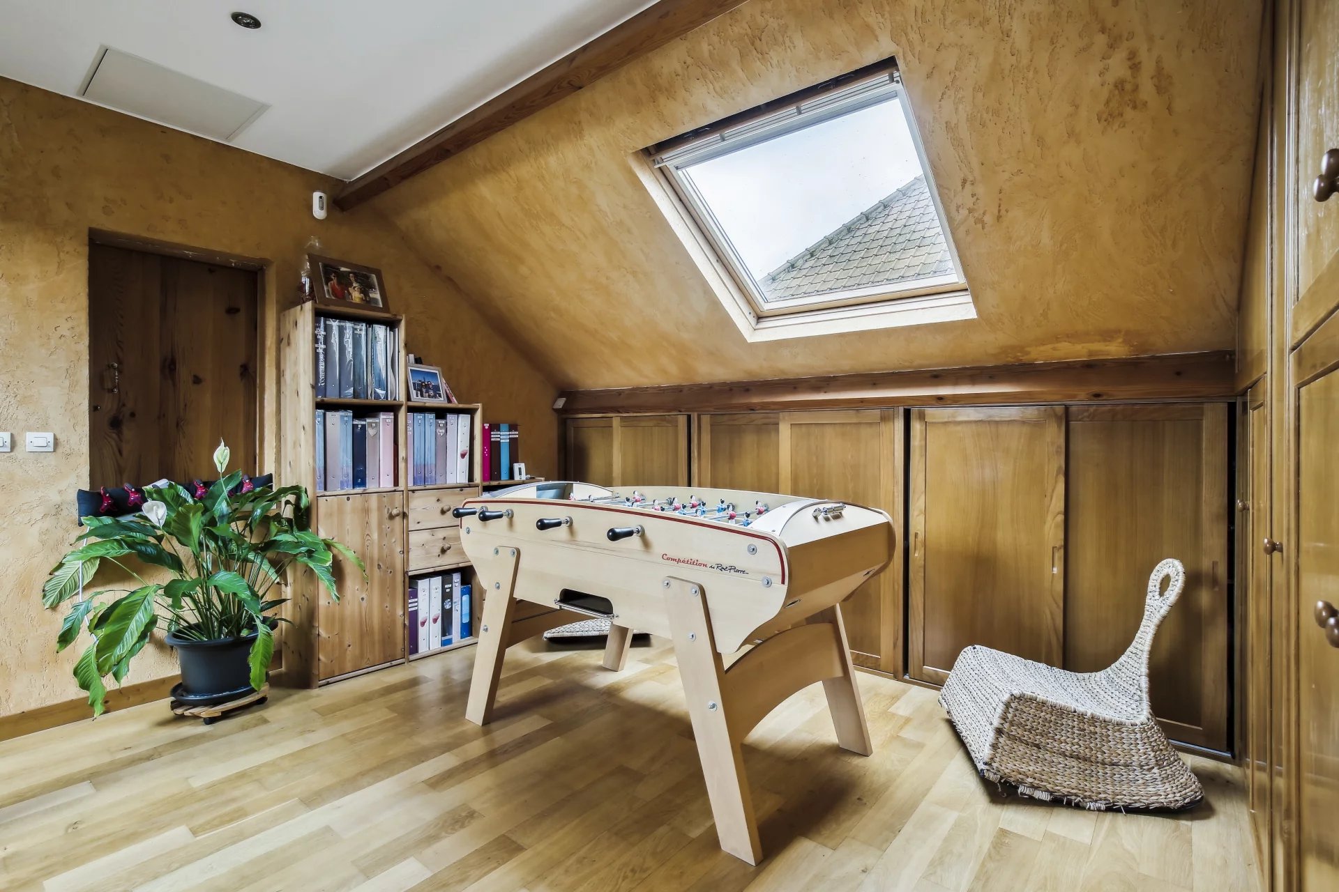 La maison est édifiée sur un terrain arboré de 1 000 m² avec deux dépendances, dont une avec spa aménageable en studio, l’autre utilisée comme atelier. Terrain piscinable et stationnement possible pour deux véhicules dans la cour.