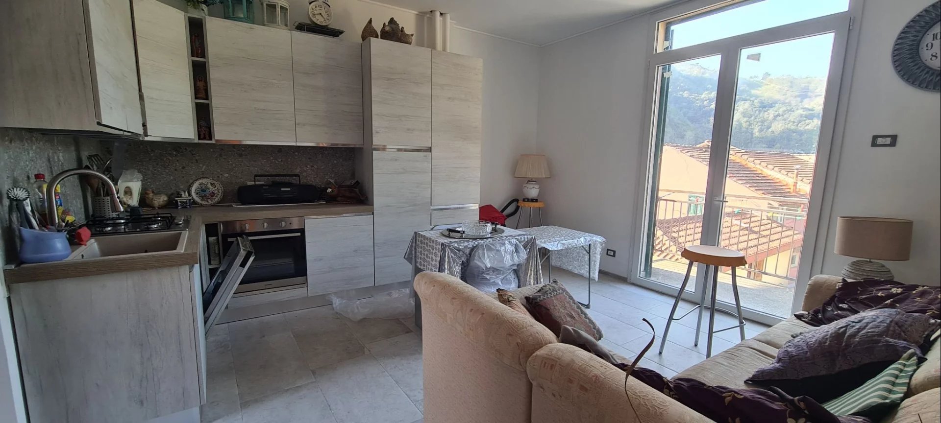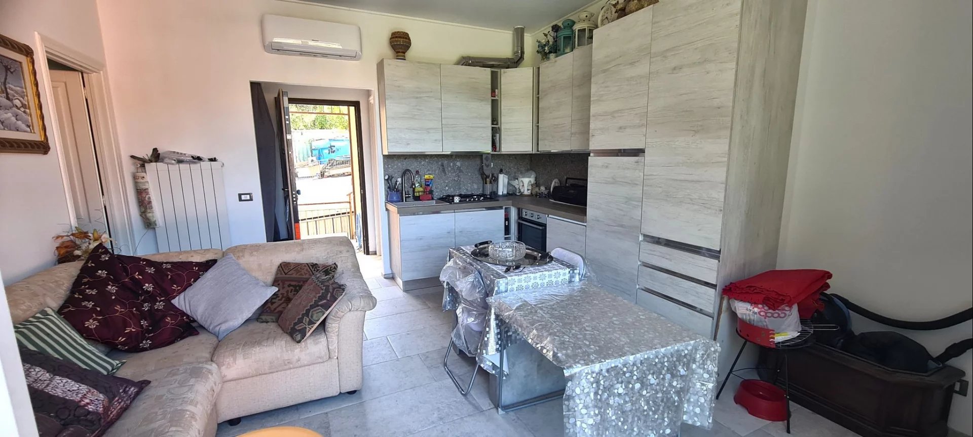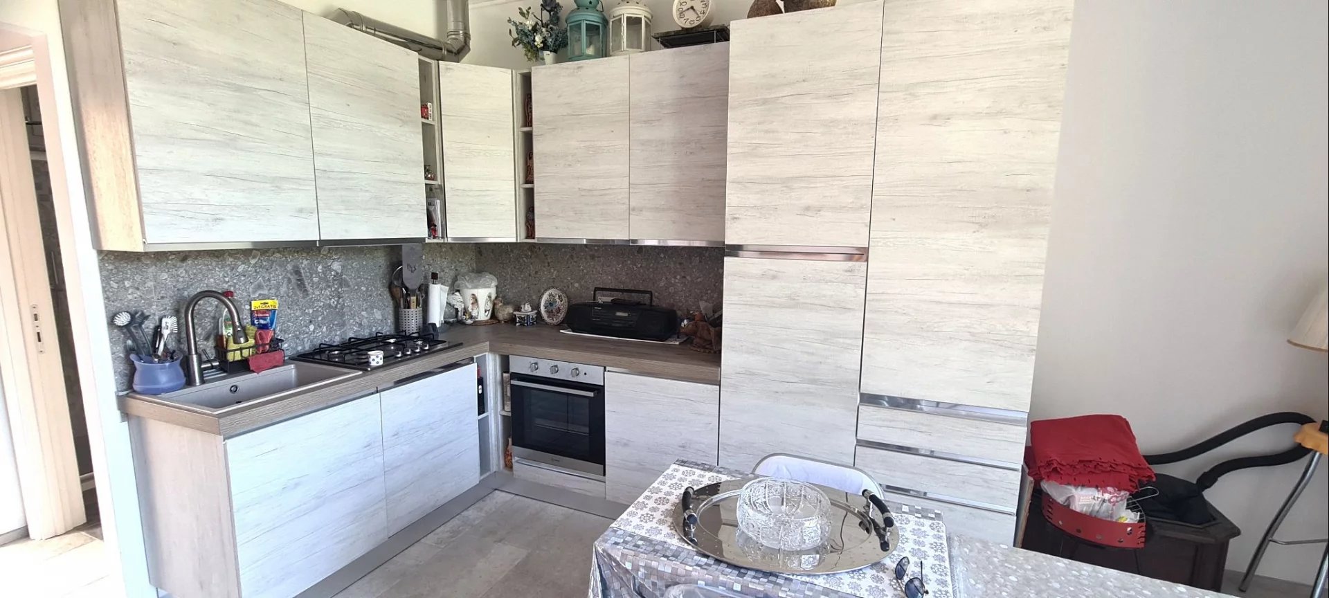 Vendesi completamente arredato con cucina angolare completamente attrezzata: fuochi, forno, frigo, lavatrice cappa e lavastoviglie, con tavolo allungabile a mt. 2,5 con 6 sedie.