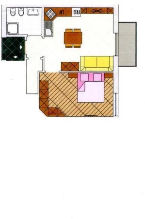 L'alloggio è così composto, ingresso dispensa, bagno con doccia, salone con cucina, camera da letto con armadio a muro ed un balcone con vista aperta sulla vallata.