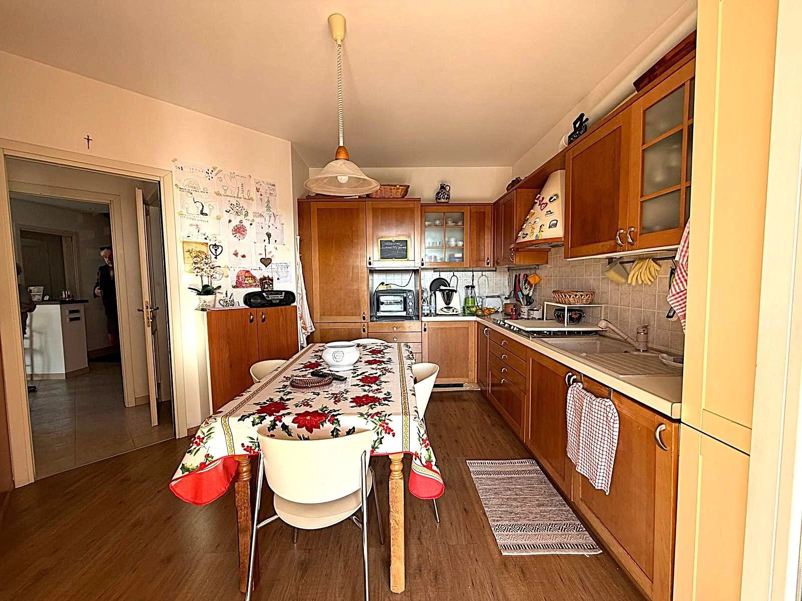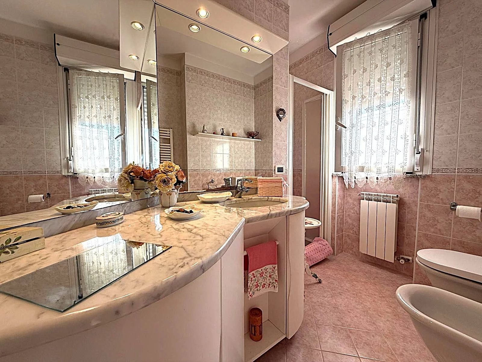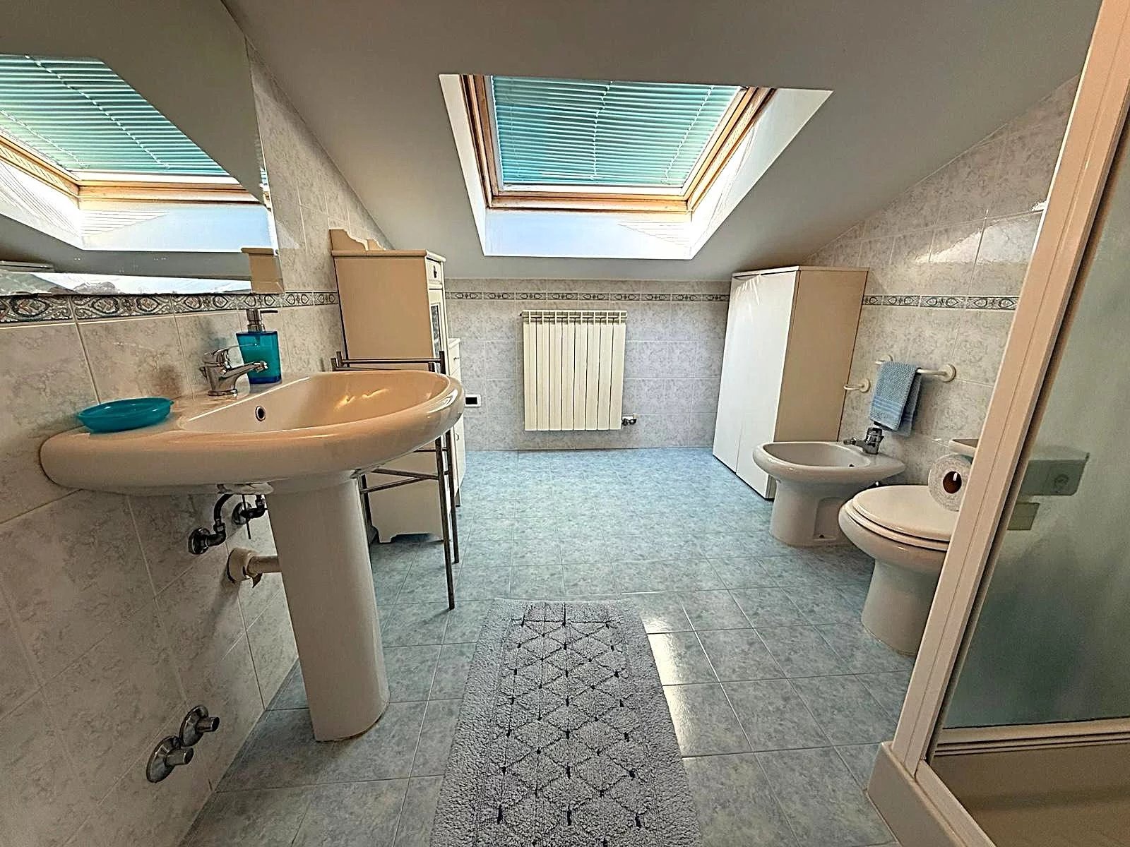 Al piano superiore, un ampio salone con cucina. L'appartamento è dotato di un grande ascensore che conduce direttamente al quinto piano, rendendo l'accesso facile e comodo. Inoltre, il box doppio di 28 mq offre spazio sufficiente per due auto, con la possibilità di parcheggiare anche mezzi a due ruote.