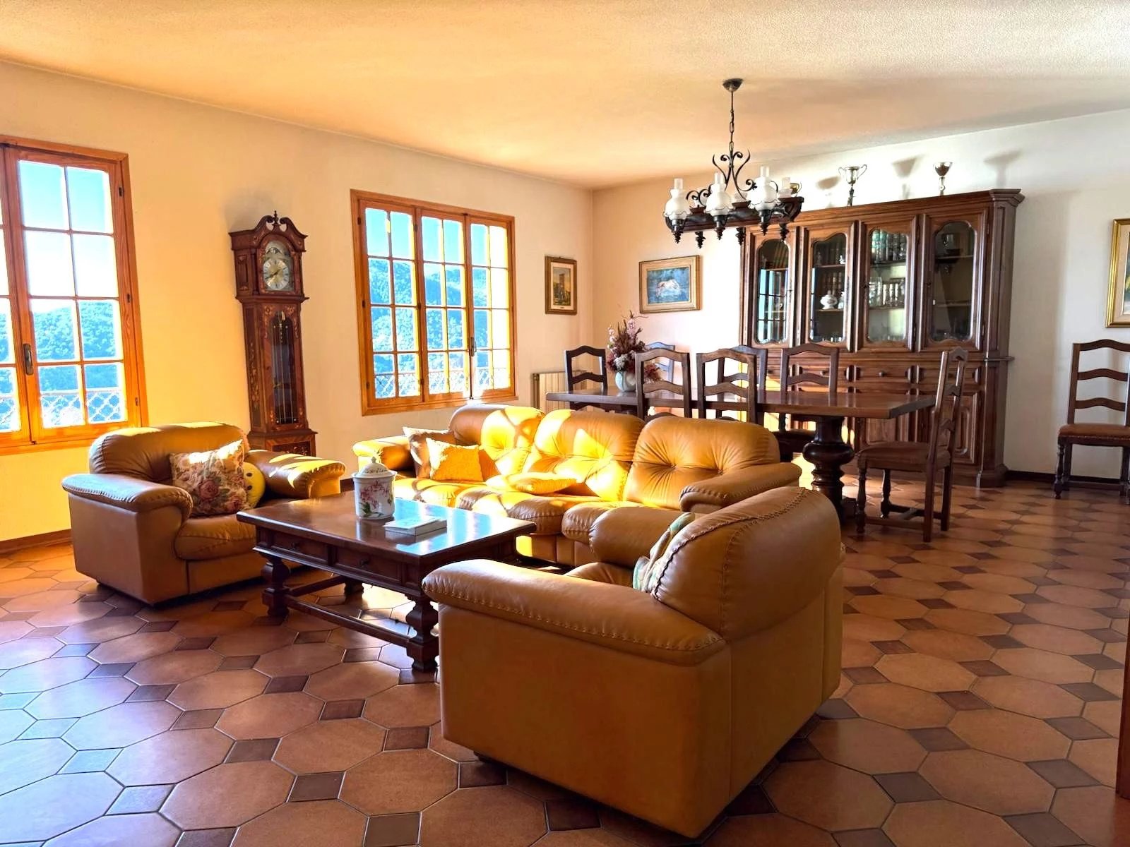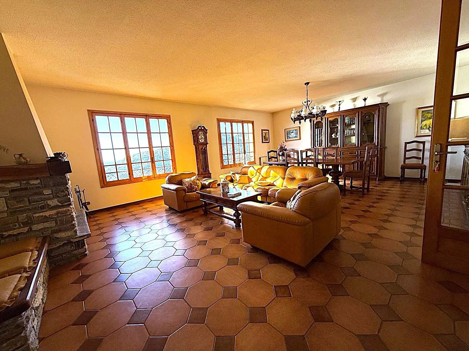 Il secondo piano è dedicato al riposo, con tre camere da letto aggiuntive, un bagno e un ripostiglio. Con una superficie commerciale di 300 m² e 280 m² calpestabili, questa villa offre ampi spazi per vivere e creare ricordi indimenticabili. Il riscaldamento è autonomo, mentre l'orientamento a sud assicura luminosità durante tutto il giorno.