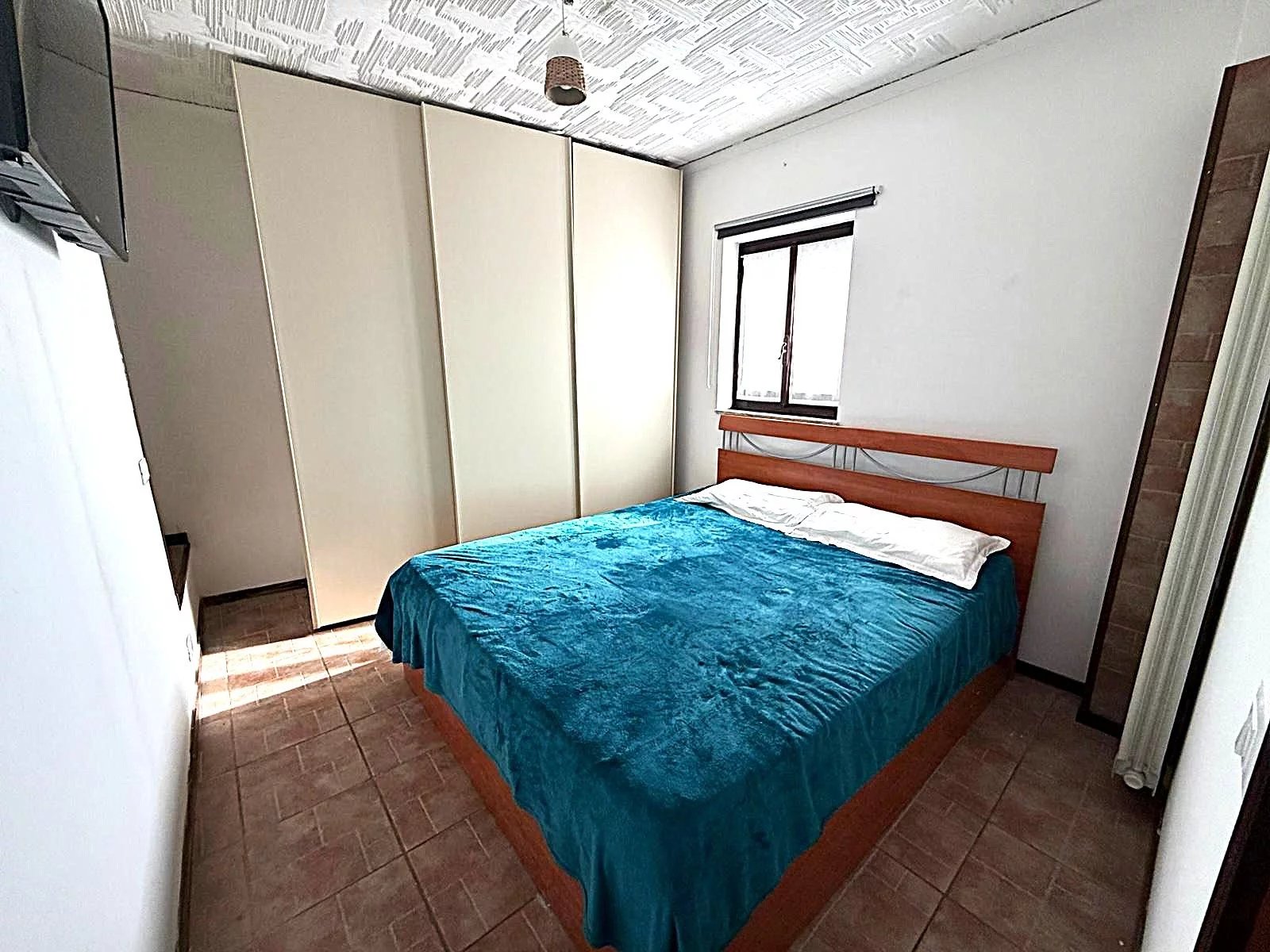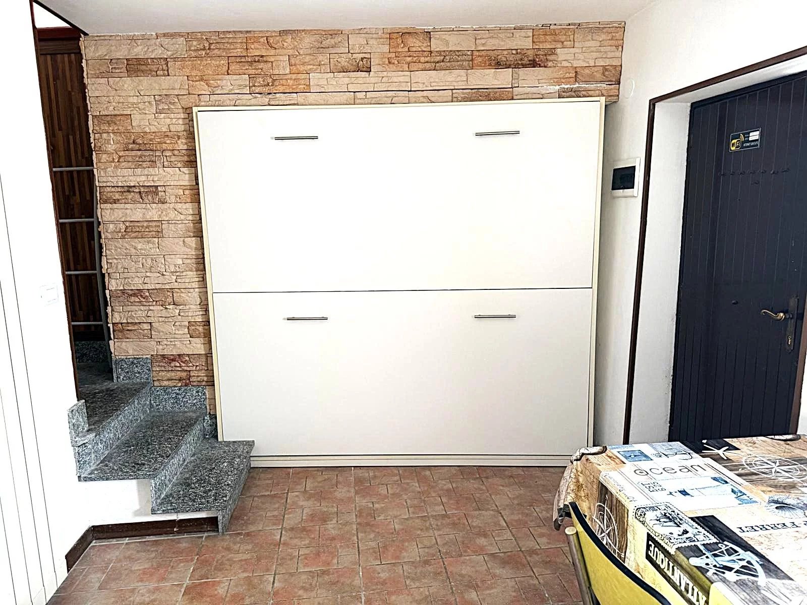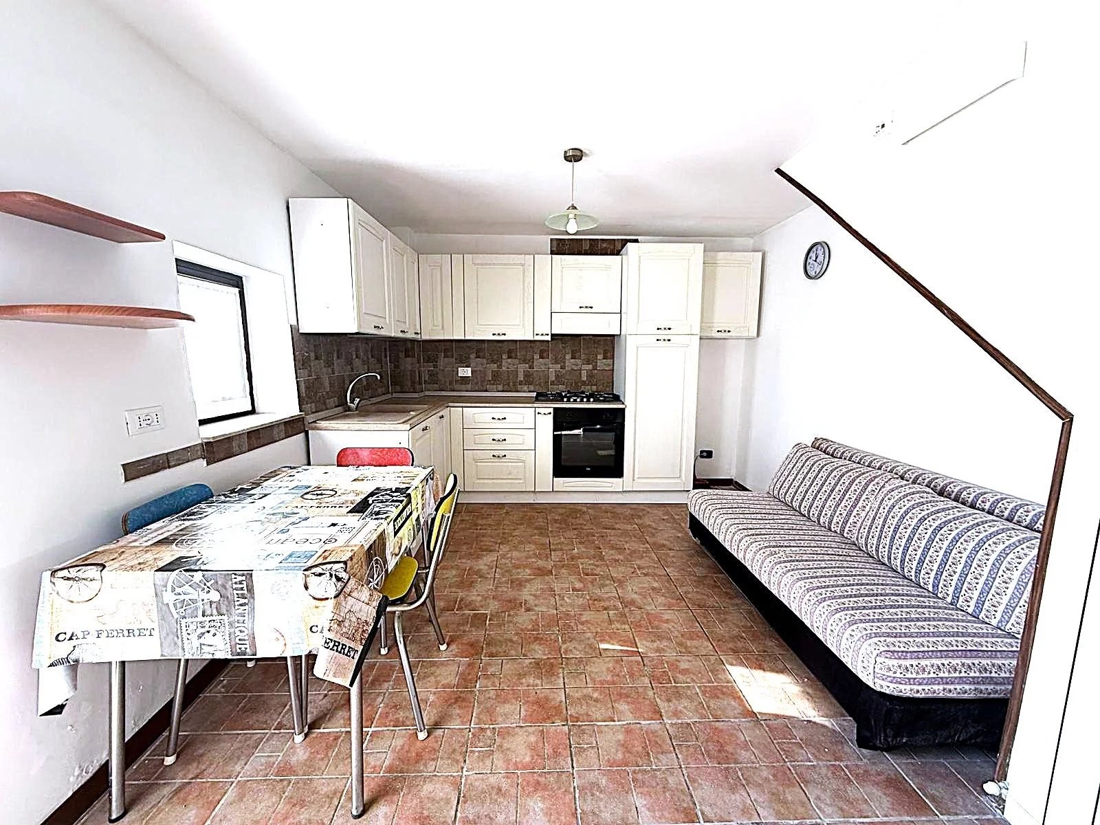 Gli interni, di 56 mq, sono ben distribuiti e comprendono un tinello con cucina e due letti a scomparsa al piano terra, una camera da letto e un bagno con finestra al primo piano. La villetta è dotata di impianto d'allarme e predisposizione per il condizionamento d'aria, garantendo comfort e sicurezza. La caldaia nuova, posizionata nel giardino, assicura un riscaldamento efficiente.