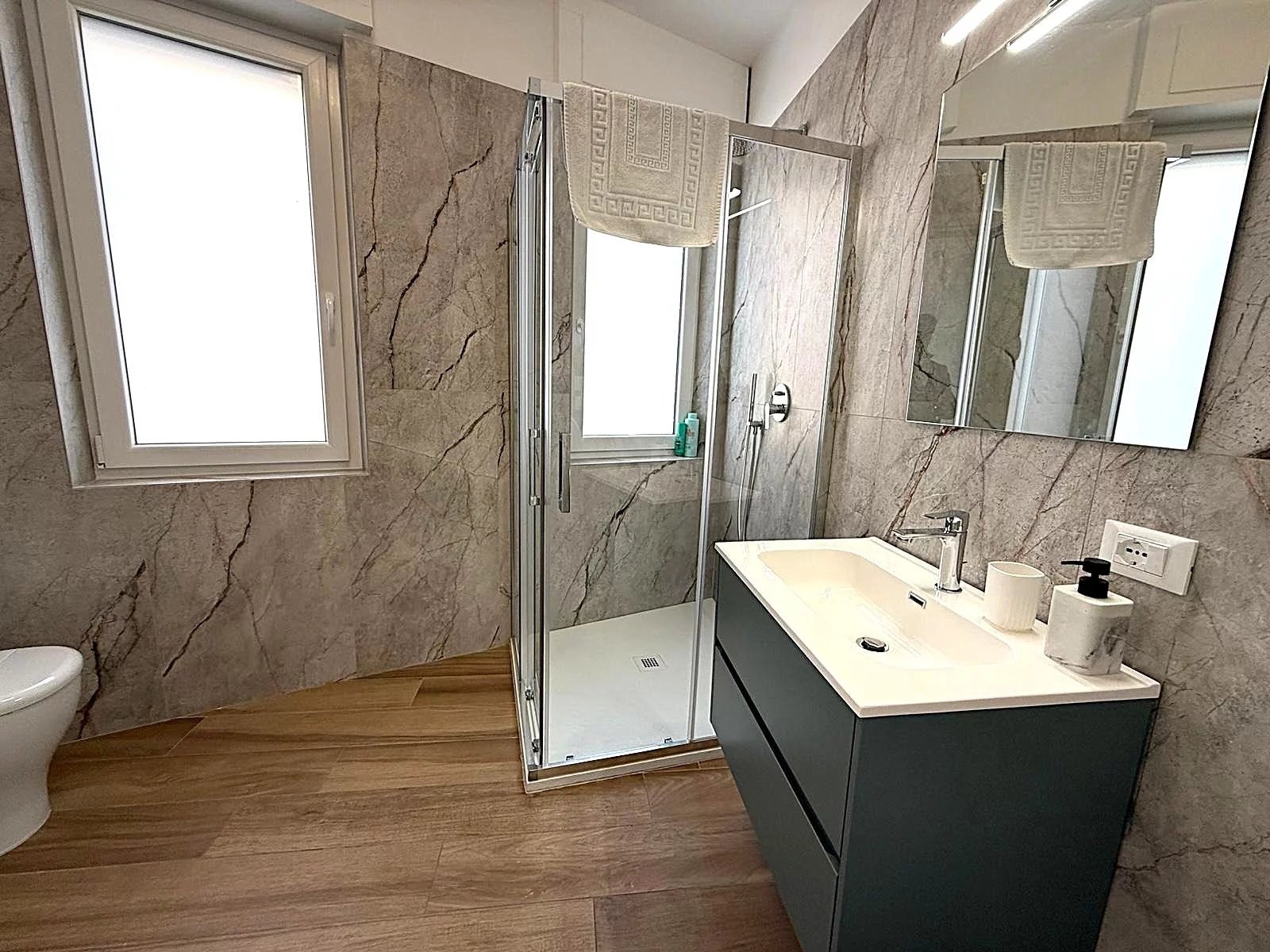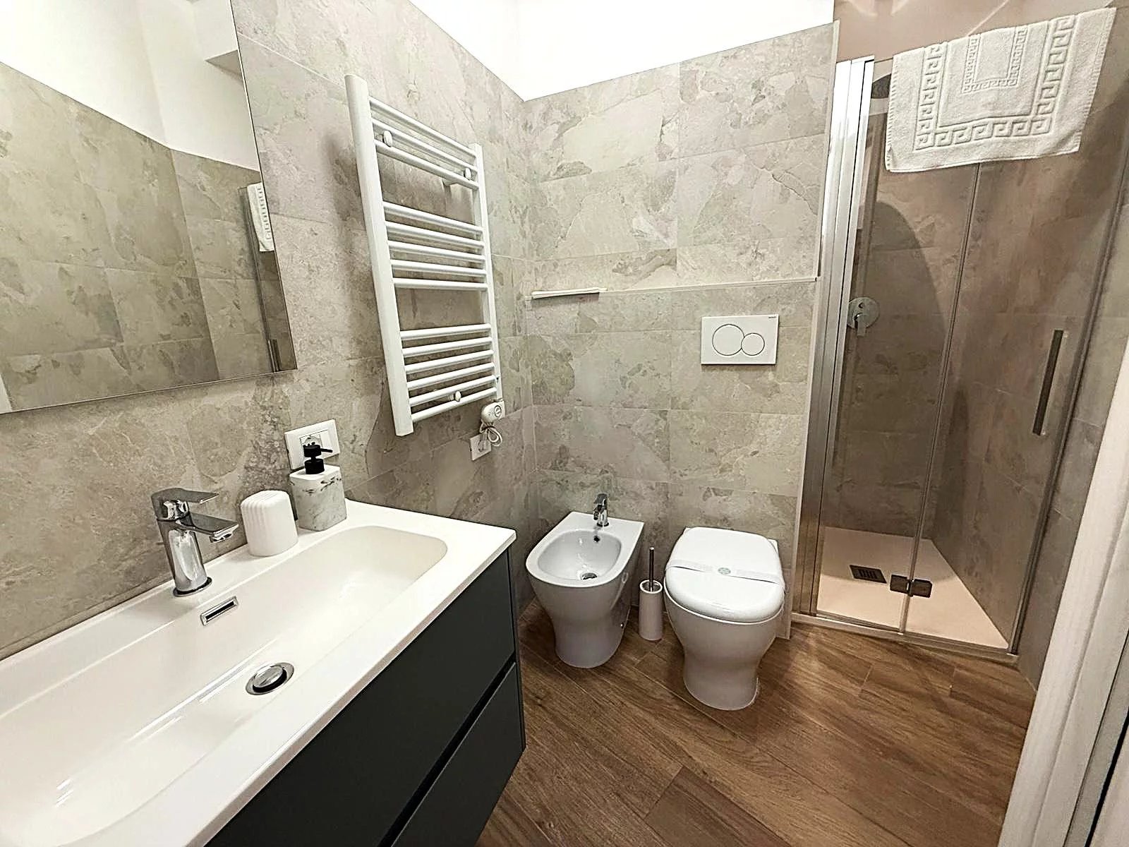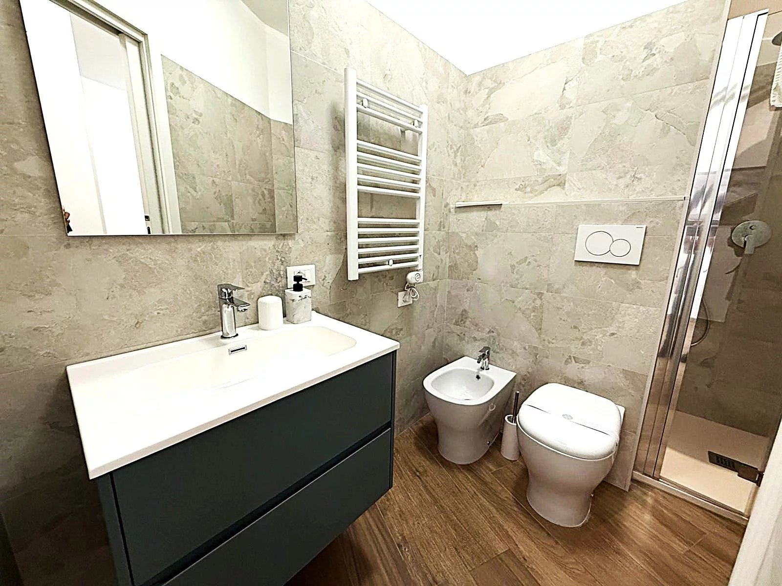 L'ampio salone con cucina a vista è perfetto per accogliere amici e familiari, mentre la balconata che si estende lungo tutto il fronte sud ti permetterà di godere di momenti indimenticabili all'aperto. L'appartamento dispone di tre camere da letto spaziose e due bagni moderni, ristrutturati con materiali di pregio, per un comfort senza pari.