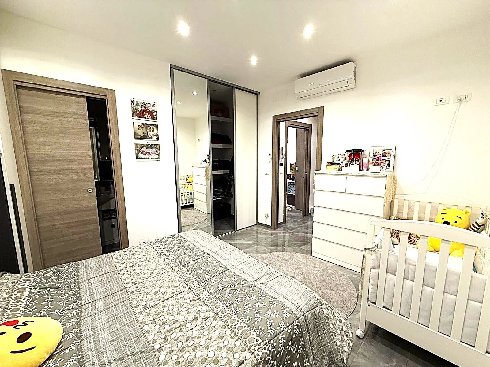 L'appartamento è composto da una cucina moderna e funzionale, un ampio salone ideale per trascorrere momenti di relax, un bagno elegante e una lavanderia comoda. Non dimenticare il delizioso balconcino, perfetto per goderti un caffè al mattino. Al piano sottostante, accessibile tramite una scala interna, troviamo due camere spaziose, una cabina armadio e un secondo bagno, offrendo così tutto lo spazio necessario per una famiglia.