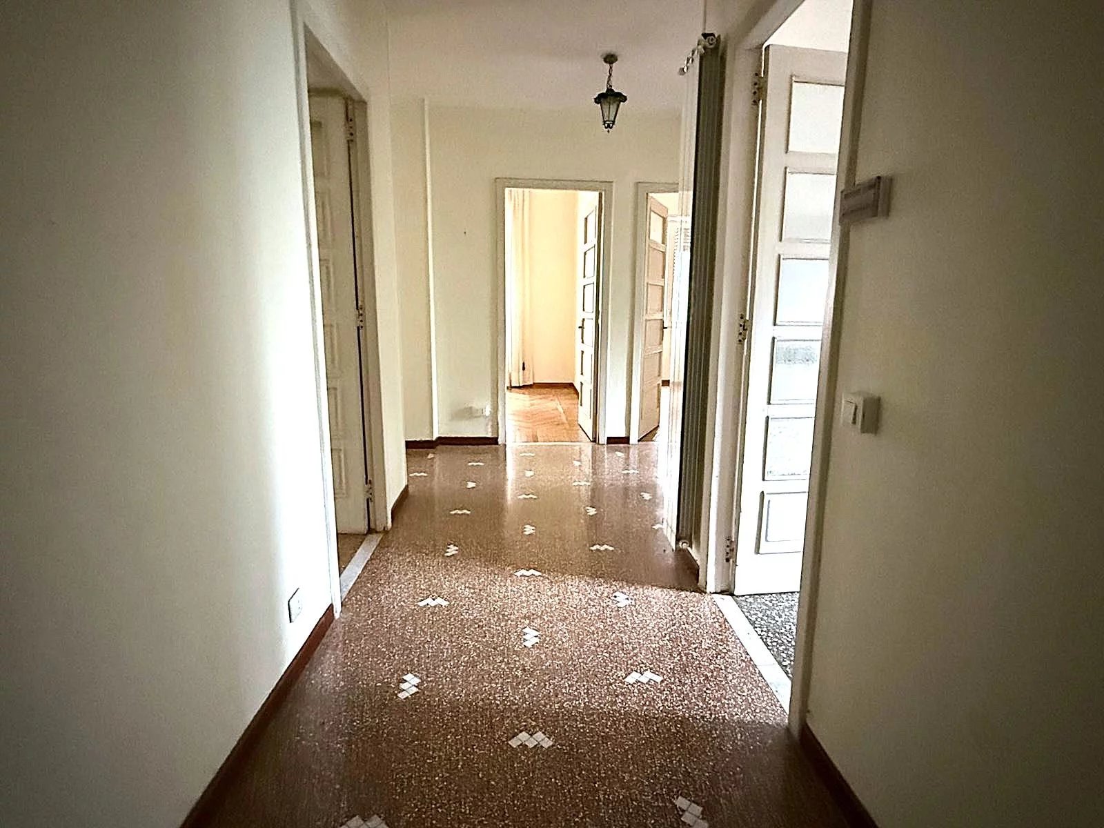 Scopri questo affascinante appartamento al piano terra, situato in un palazzo signorile degli anni '60. Con una superficie commerciale di 110 m² e ben 100 m² calpestabili, questo immobile offre ampi spazi per vivere in comfort. L'appartamento è composto da tre camere da letto, una grande sala ideale per accogliere amici e familiari, una cucina funzionale e un bagno.