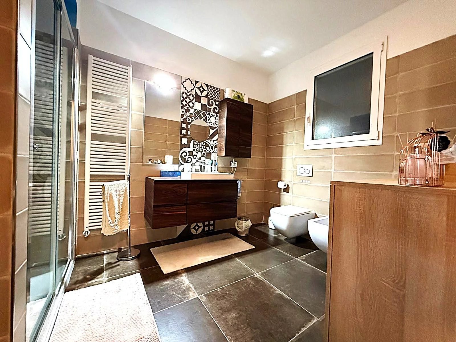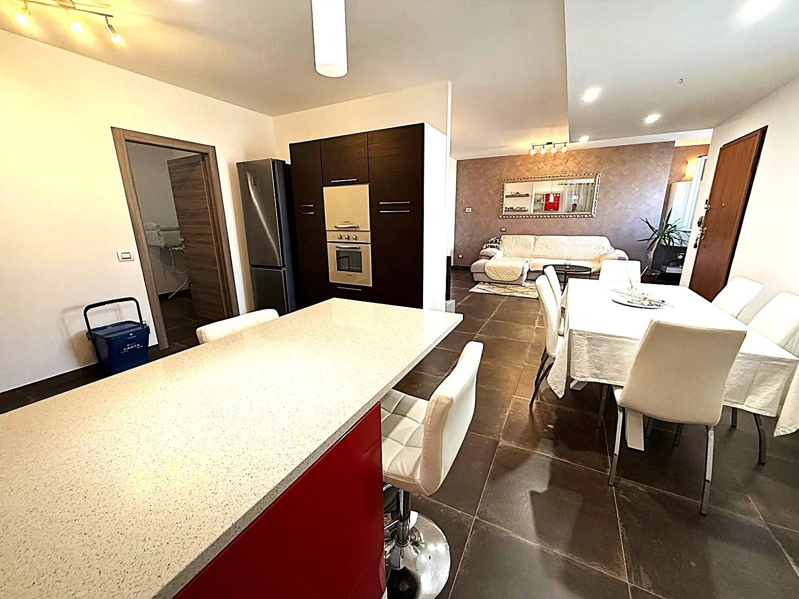 L'appartamento è composto da un ampio salone con cucina a vista, una cameretta, un disimpegno, un bagno e una camera padronale dotata di una grande zona armadi. Ogni ambiente è pensato per garantire comfort e funzionalità, con un orientamento est che permette di godere di una luminosità naturale durante tutto il giorno. La zona è appartata e silenziosa, perfetta per chi cerca un rifugio lontano dal caos cittadino.