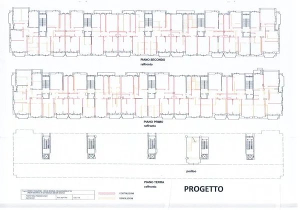 Qualora invece si voglia variare la destinazione da medico sanitaria ad abitativa (vedasi planimetria progetto), ciò è possibile mediante DIA senza dover pagare oneri di monetizzazione per parcheggi, in quanto la società dispone di n. 21 box (asservibili in quanto ubicati entro i 300 mt dal fabbricato) nella vicina via Trensasco al prezzo di Euro 28.000,00 cadauno. Il progetto prevede la ristrutturazione in n. 20 alloggi (10 per piano) esattamente uguali a quelli dei piani soprastanti e in un negozio (al posto della attuale scala indipendente).