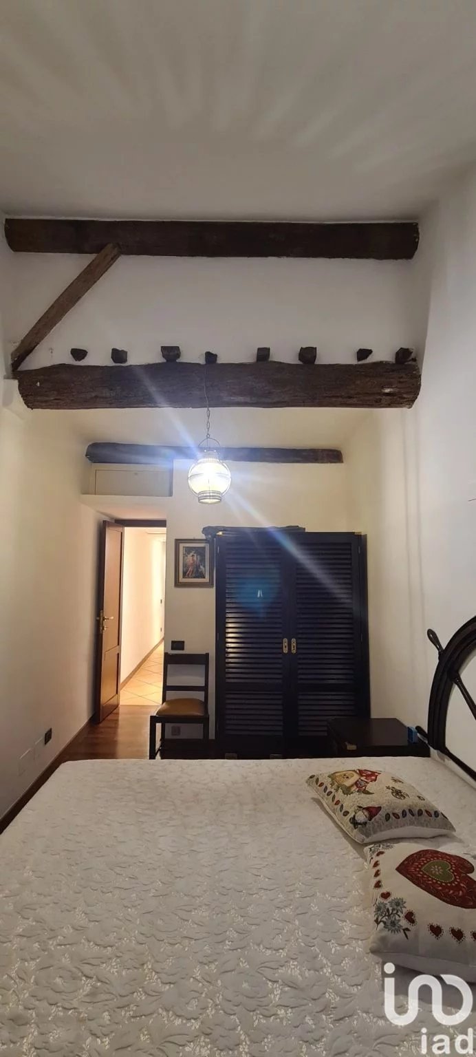 Il soffitto è corredato da travi in legno a vista.
