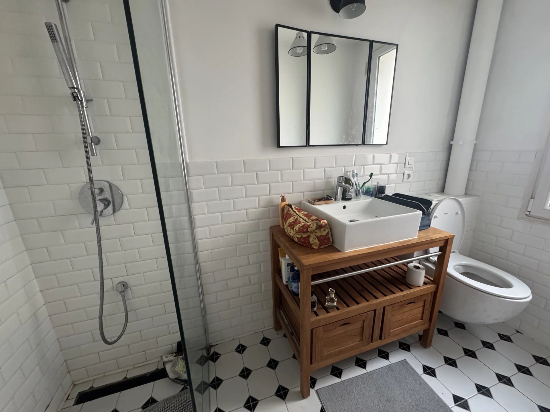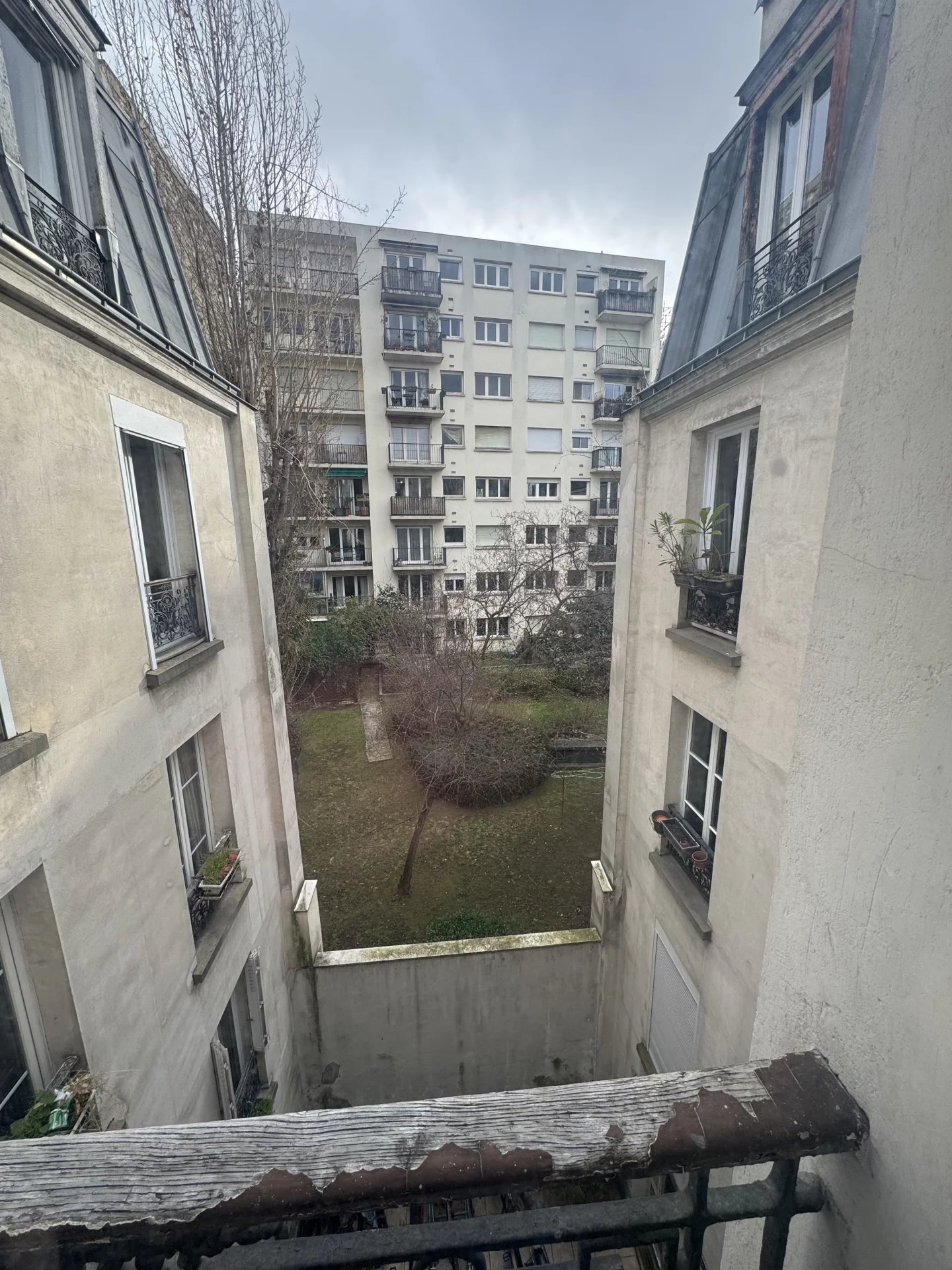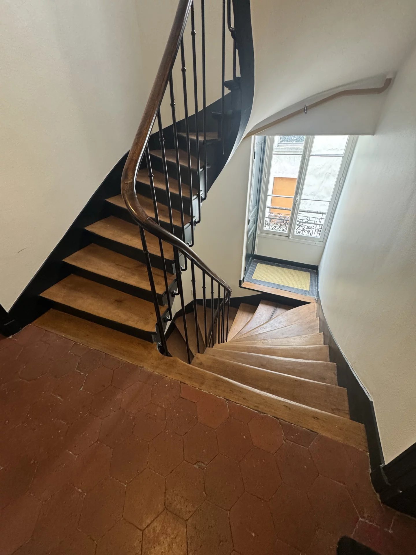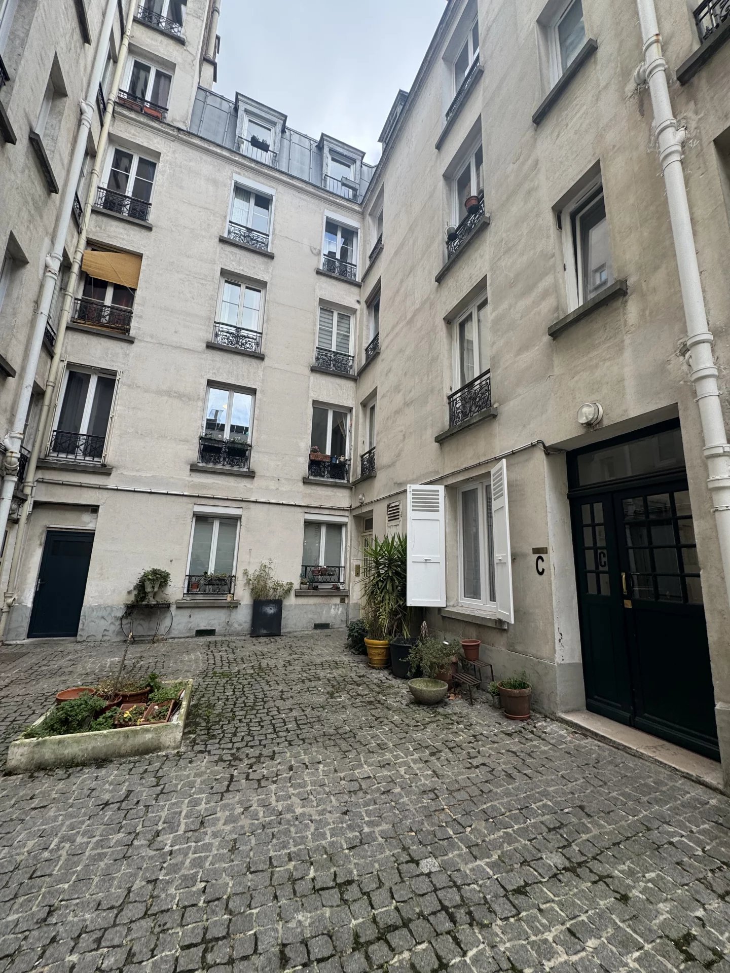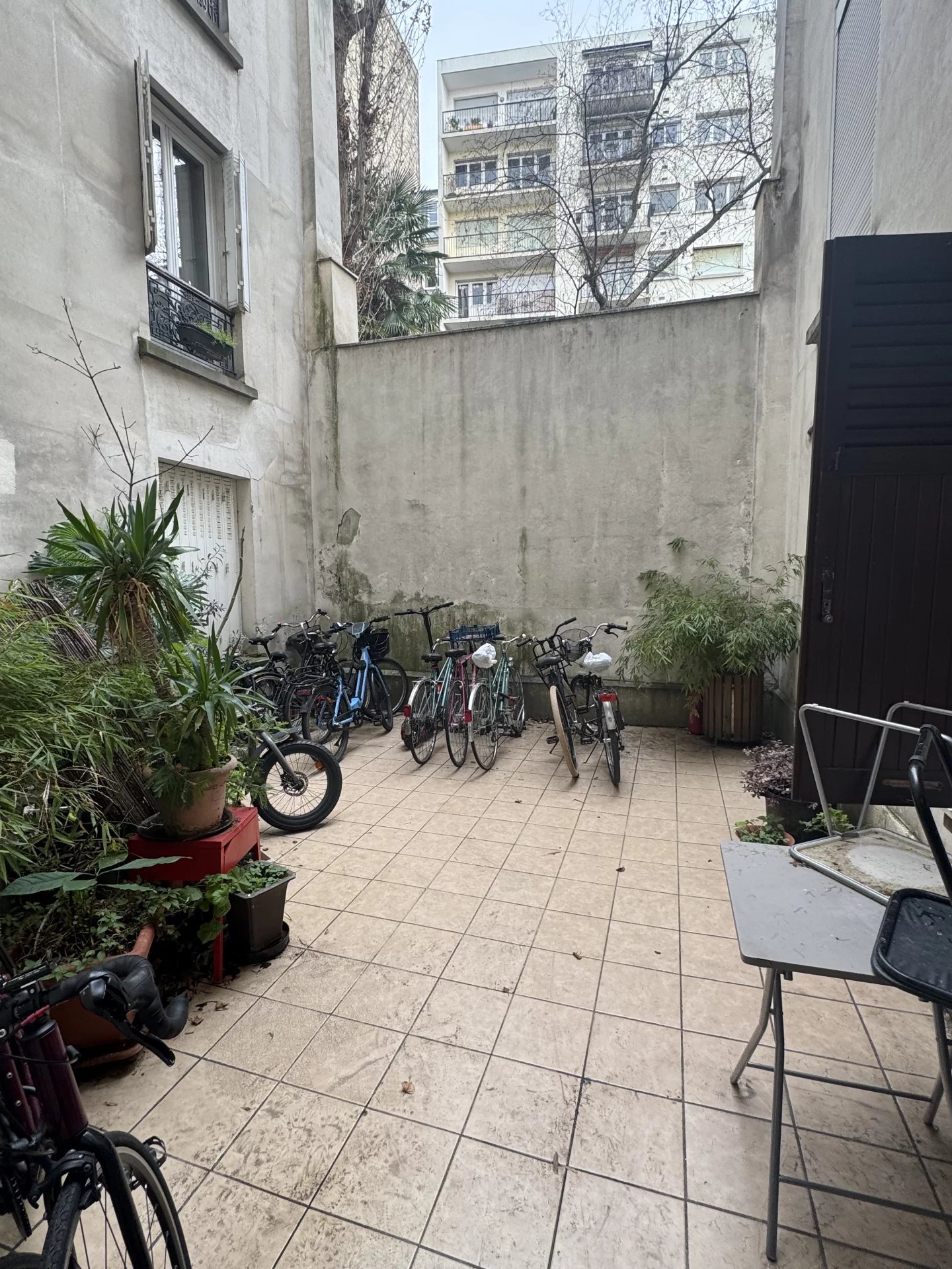 Marché Secrétan: au 3eme étage sans ascenseur dans un immeuble de 1900, un appartement de deux pièces traversant de 35m² environ, calme et exposé est et ouest, en très bon état. L'appartement est composé d'une petite entrée, un séjour, une cuisine séparée ( verres d'atelier), une chambre avec dressing, et une salle de douche à l'italienne avec WC. Bon DPE. Une cave. Un local à vélos.
