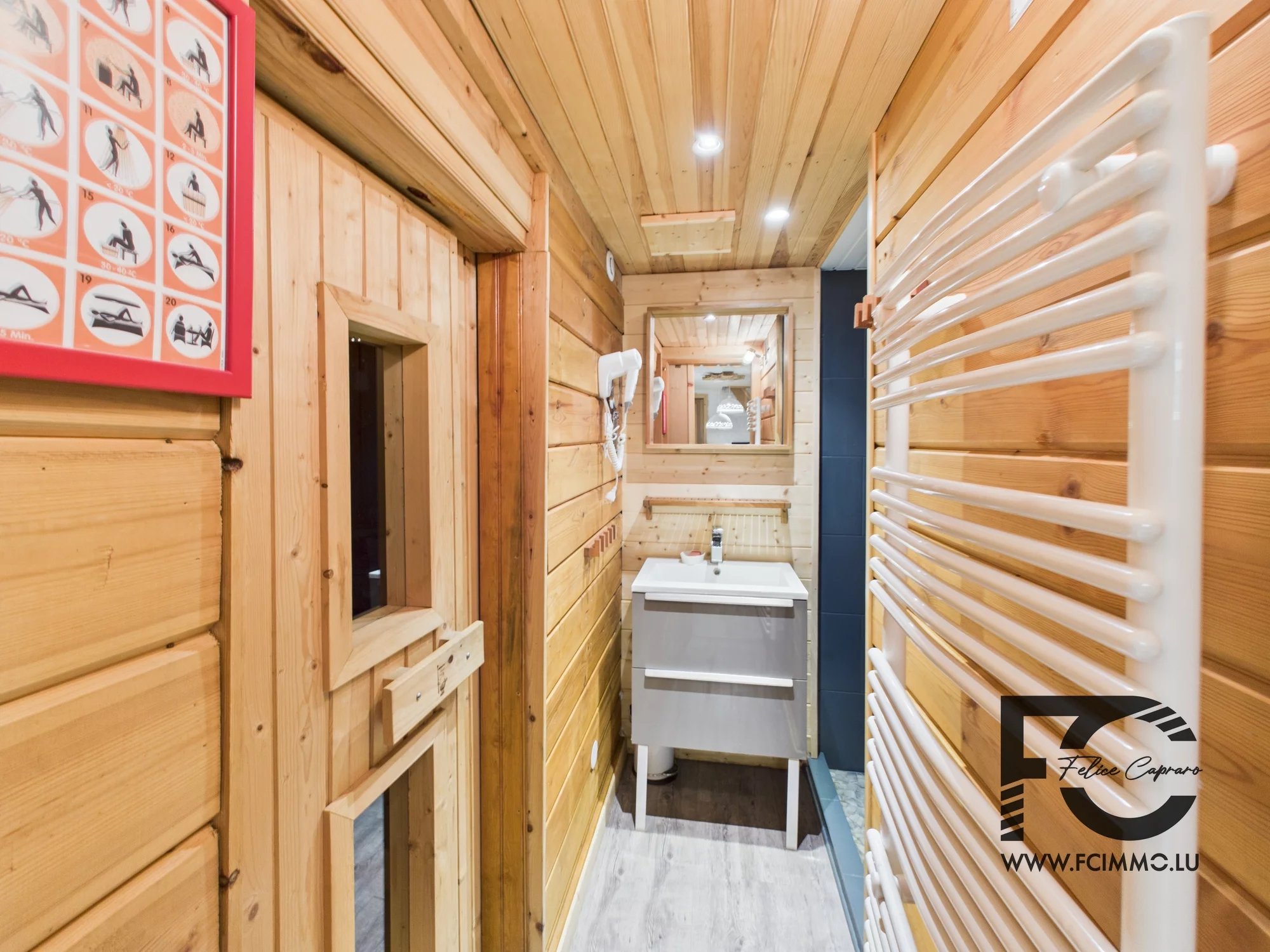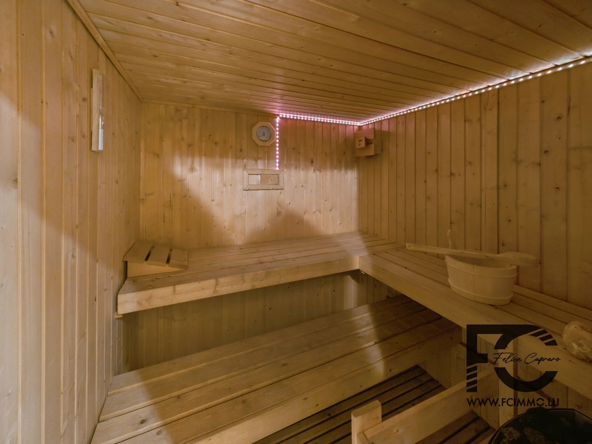 L'ingresso conduce a una zona notte con tre camere da letto, un ripostiglio e un'area benessere con sauna. Questo livello comprende anche un bagno con doccia e una toilette separata.
