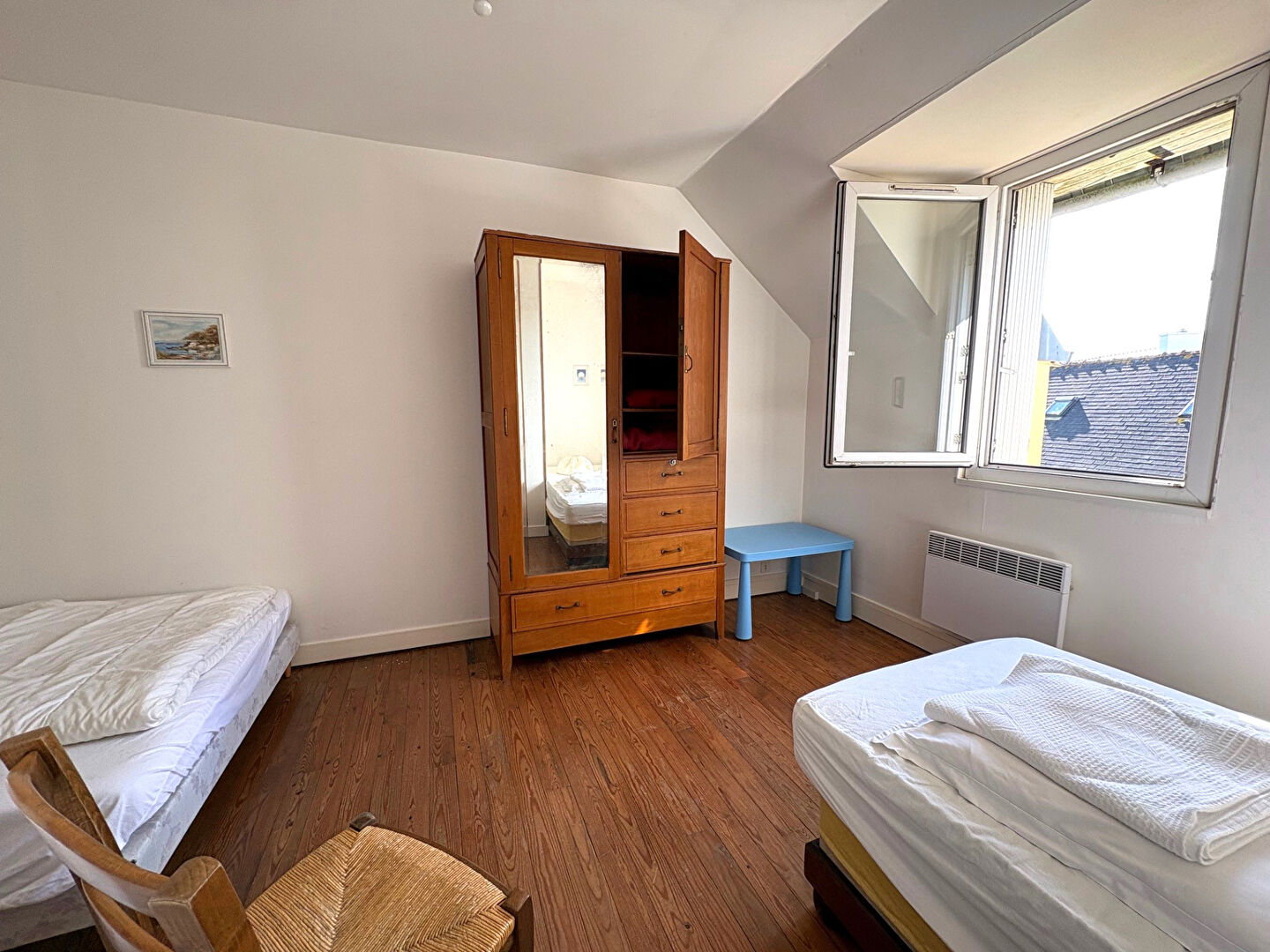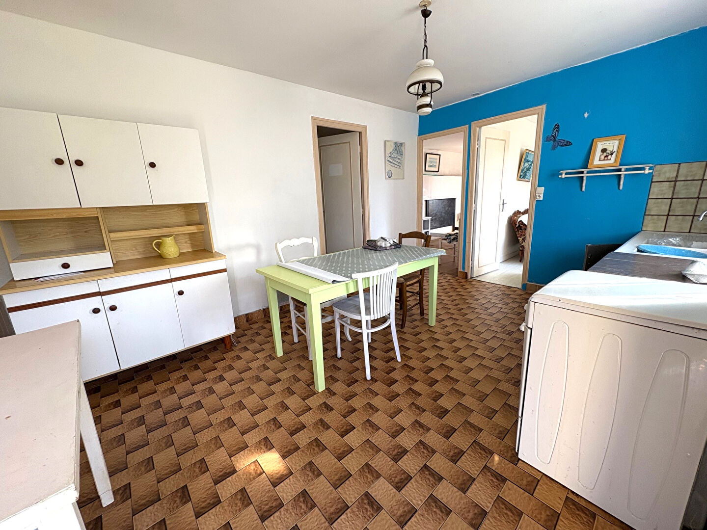 4884BR Découvrez cette charmante maison de 113 m² située à Ploudalmézeau, à seulement 1 km de la mer, séparée en 2 logements, avec possibilité de tout réunir. Ce bien, à vendre, dispose de 6 pièces dont 3 chambres, avec une chambre au rez-de-chaussée, idéal pour les familles. La cuisine américaine s'ouvre sur un séjour exposé plein sud, offrant une belle luminosité. Vous apprécierez également le poêle à bois pour des soirées chaleureuses. La maison est dotée de 2 salles d'eau et de 2 WC, parfait pour le confort de tous. Le terrain de 733 m² vous permettra de profiter d'un espace extérieur agréable, bien que des travaux soient à prévoir pour redonner vie à cette ancienne ferme en pierre et parpaing. Les fenêtres en PVC double vitrage assurent une bonne isolation. Côté commodités, vous serez à 5 minutes des écoles, dont l'École maternelle et primaire Keribin et le Collège privé Saint-Joseph. Profitez également de la proximité de divers commerces tels que boulangeries, pharmacies et supermarchés. Image extérieure générée par IA. Un garage est inclus avec la propriété. Ne manquez pas cette opportunité, contactez Galvaing Immobilier PLOUDALMEZEAU pour plus d'informations. (5.00 % honoraires TTC à la charge de l'acquéreur.)