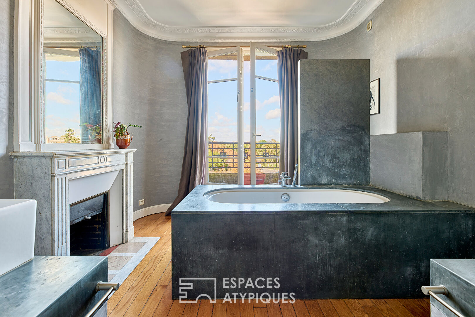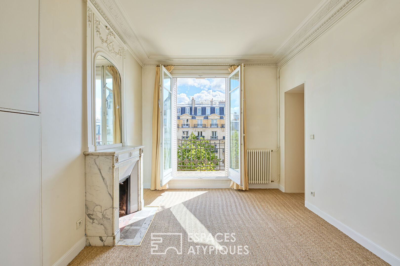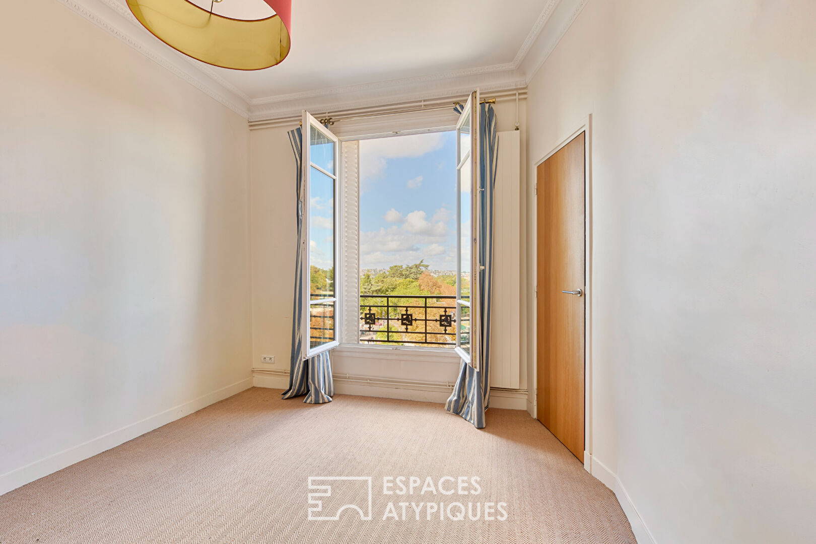 Village d'Auteuil, cet appartement familial d'une superficie de 213,44 m² (212,54 m² Carrez) avec balcons filants totalisant 20,30 m², se trouve au 5e étage avec ascenseur d'un très bel immeuble Haussmannien bien entretenu. Il séduit notamment par son caractère traversant, sa luminosité et ses agréables vues dégagées laissant aussi apprécier le haut de la Tour Eiffel. Né du rassemblement de deux lots, réunis en un seul appartement occupant seul son palier, il bénéficie de deux entrées distinctes. Une entrée de 10 m² conduit à un lumineux séjour de près de 40 m², agrémenté d'une bibliothèque sur mesure et doté d'une cheminée contemporaine. Il est prolongé sur toute sa longueur par un confortable balcon filant. La cuisine dinatoire de 27 m² est équipée de rangements profonds sur mesure, d'un espace garde-manger et d'une belle cheminée, créant une pièce conviviale et chaleureuse. La suite parentale de près de 50 m², présente une vaste chambre baignée de lumière, bénéficiant d'un accès direct au balcon avant de dévoiler son double dressing et sa salle de bains attenante, équipée d'une baignoire, d'une douche et de toilettes. Un confort contemporain dans un cadre classique et raffiné. La partie nuit se compose de quatre autres chambres de 16,20 m², 14,90 m², 11,70 m² et 8,81 m². Elles s'accompagnent d'une salle de bains avec baignoire et douche, des toilettes séparées et d'une buanderie spacieuse. Les cinq cheminées, le parquet en point de Hongrie et les moulures d'époque sont autant d'éléments recherchés venant sublimer le charme intemporel de cet appartement, auxquels s'ajoutent les balcons filants offrant une respiration extérieure rare avec une vue ouverte sur le ciel parisien. Une cave complète ce bien, soumis au régime de copropriété. Sectorisation Jean de la Fontaine Métro Porte d'Auteuil ou Michel-Ange Auteuil (Lignes 9 et 10) Contact : Juliette +33 6 35 19 03 14 Copropriété de 18 lots (Pas de procédure en cours). Charges annuelles : 9545 euros. JULIETTE MOTTET (EI) Agent Commercial - Numéro RSAC : 938 602 026 - PARIS.