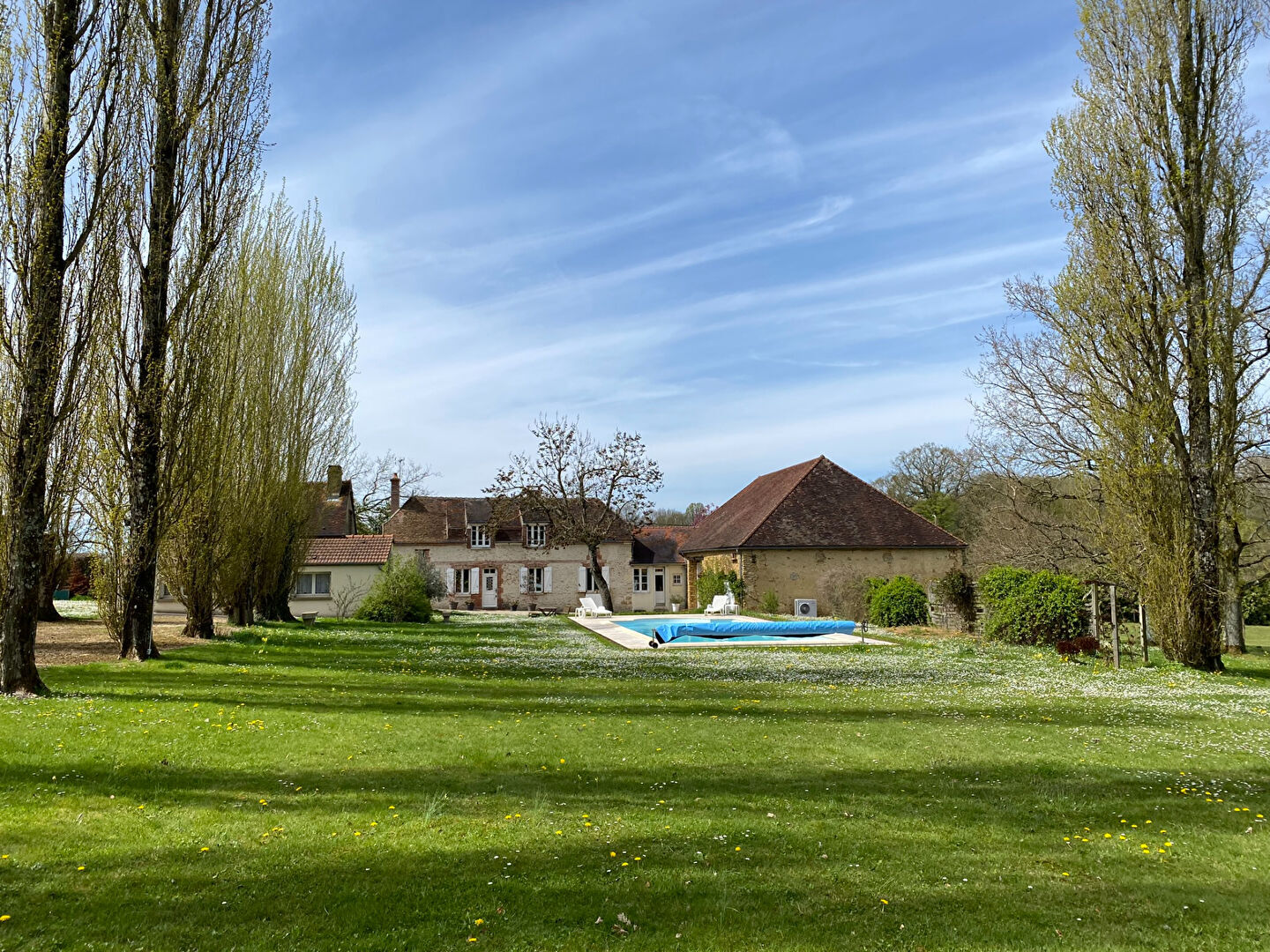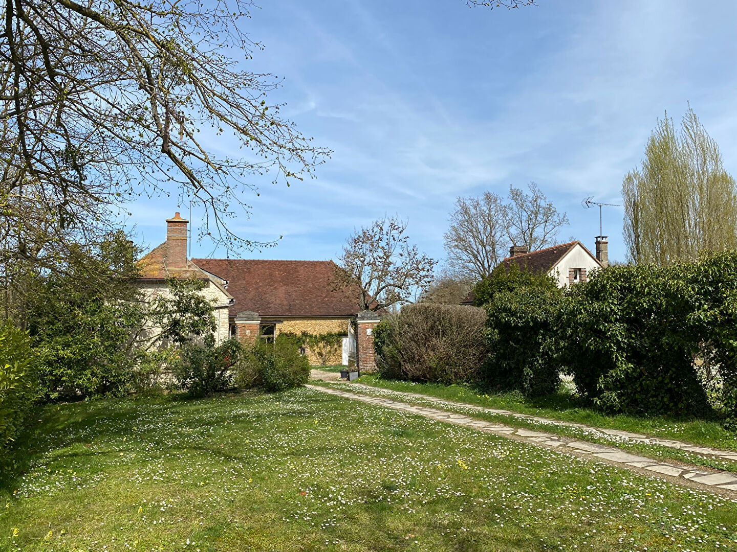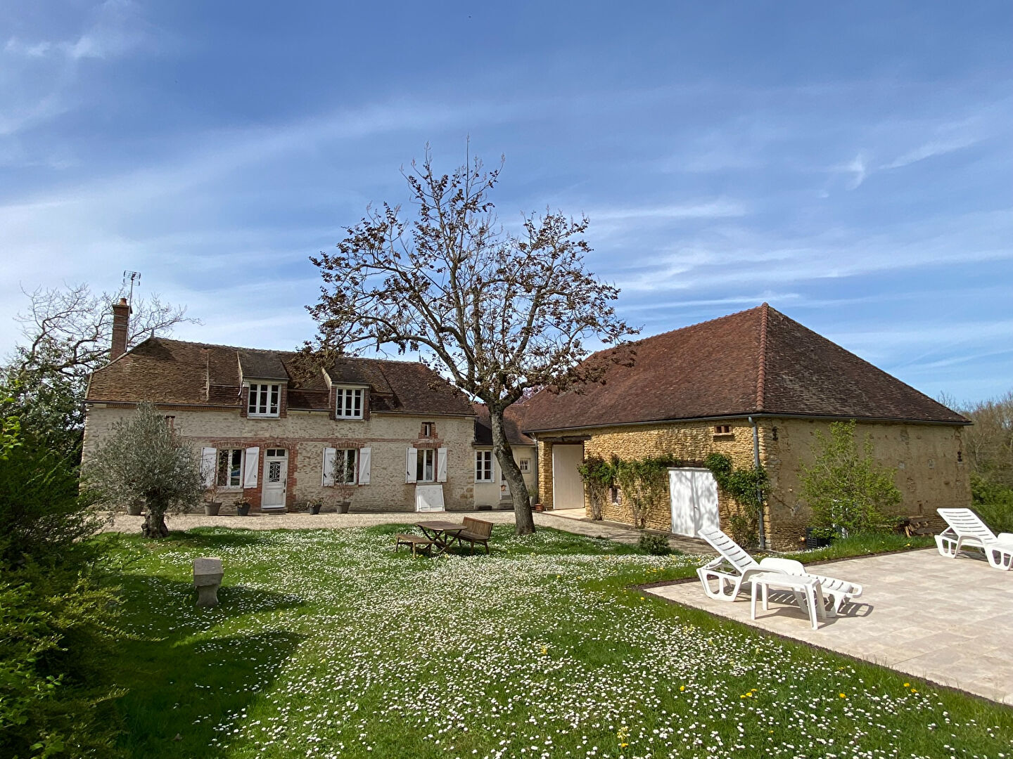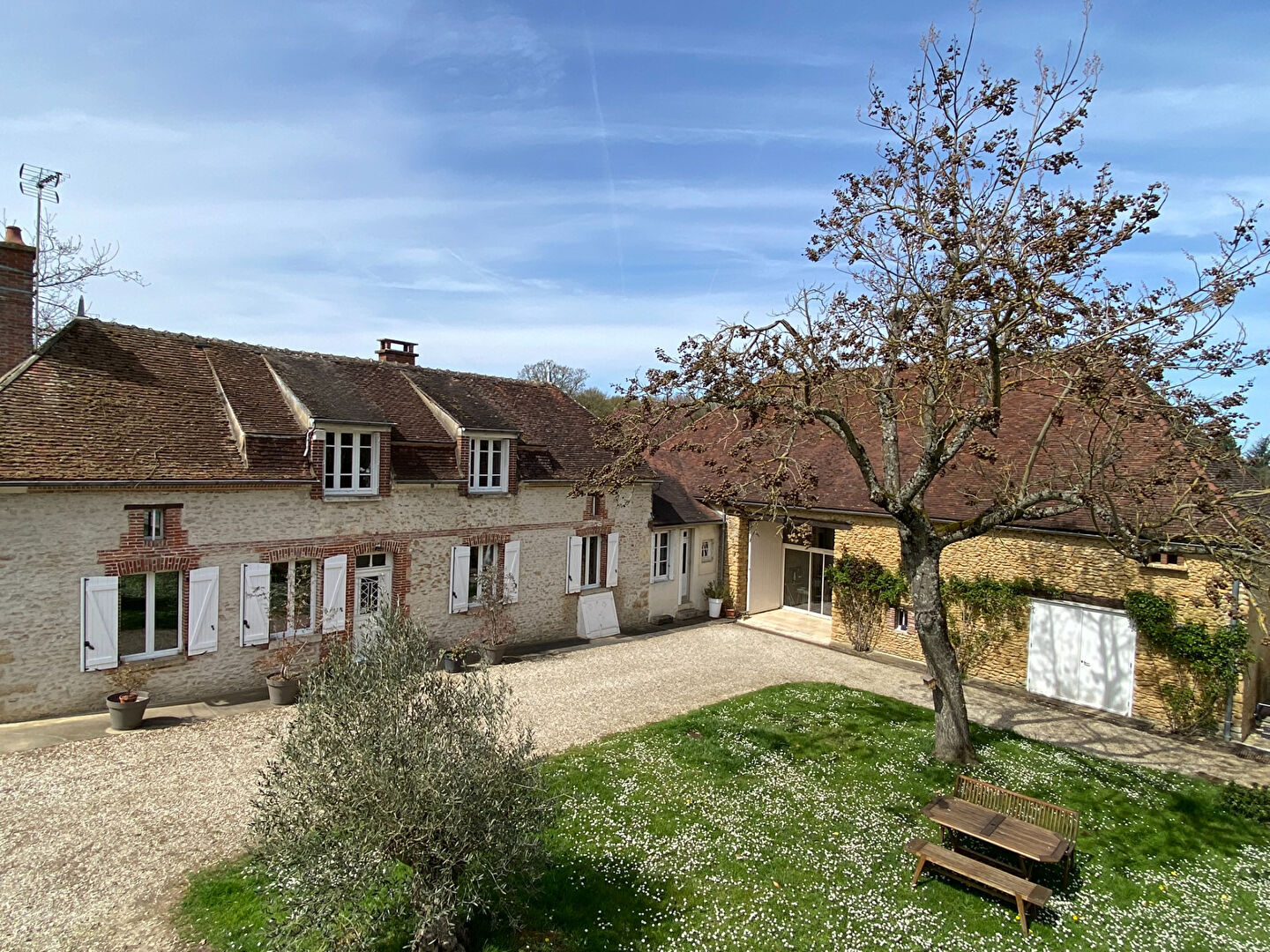 A proximité de Saint-Florentin, sur la commune de Butteaux, cette belle propriété en pierre restaurée se situe en retrait du village, au coeur d'un agréable parc paysager. La maison principale propose de beaux espaces de vie et beaucoup de charme. Elle comprend un grand séjour ouvert sur une cuisine aménagée, avec une grande cheminée, des poutres apparentes et un sol en pierre de Bourgogne. Un salon convivial avec cheminée, une entrée avec rangements, une salle de bains avec wc, une salle d'eau, des wc séparés ainsi qu'une lingerie complètent le rez-de-chaussée. A l'étage, un palier et un couloir desservent quatre chambres avec poutres apparentes ainsi qu'un wc. Une maison d'amis indépendante vient compléter l'ensemble. Elle dispose d'une cuisine aménagée et équipée, d'un salon avec cheminée, d'une chambre, d'une salle d'eau et de wc. A l'étage, une chambre sous combles permet d'accueillir famille ou amis confortablement. Le chauffage est assuré par une pompe à chaleur air/eau. La propriété comprend également plusieurs dépendances, dont une grande grange avec une chaufferie, un garage et une cave, offrant de nombreuses possibilités. L'ensemble est implanté sur un grand terrain clos et arboré d'environ 19 010 m², avec piscine, grande allée, pré, verger et cour, dans un cadre calme et verdoyant, idéal pour les amoureux de la nature.