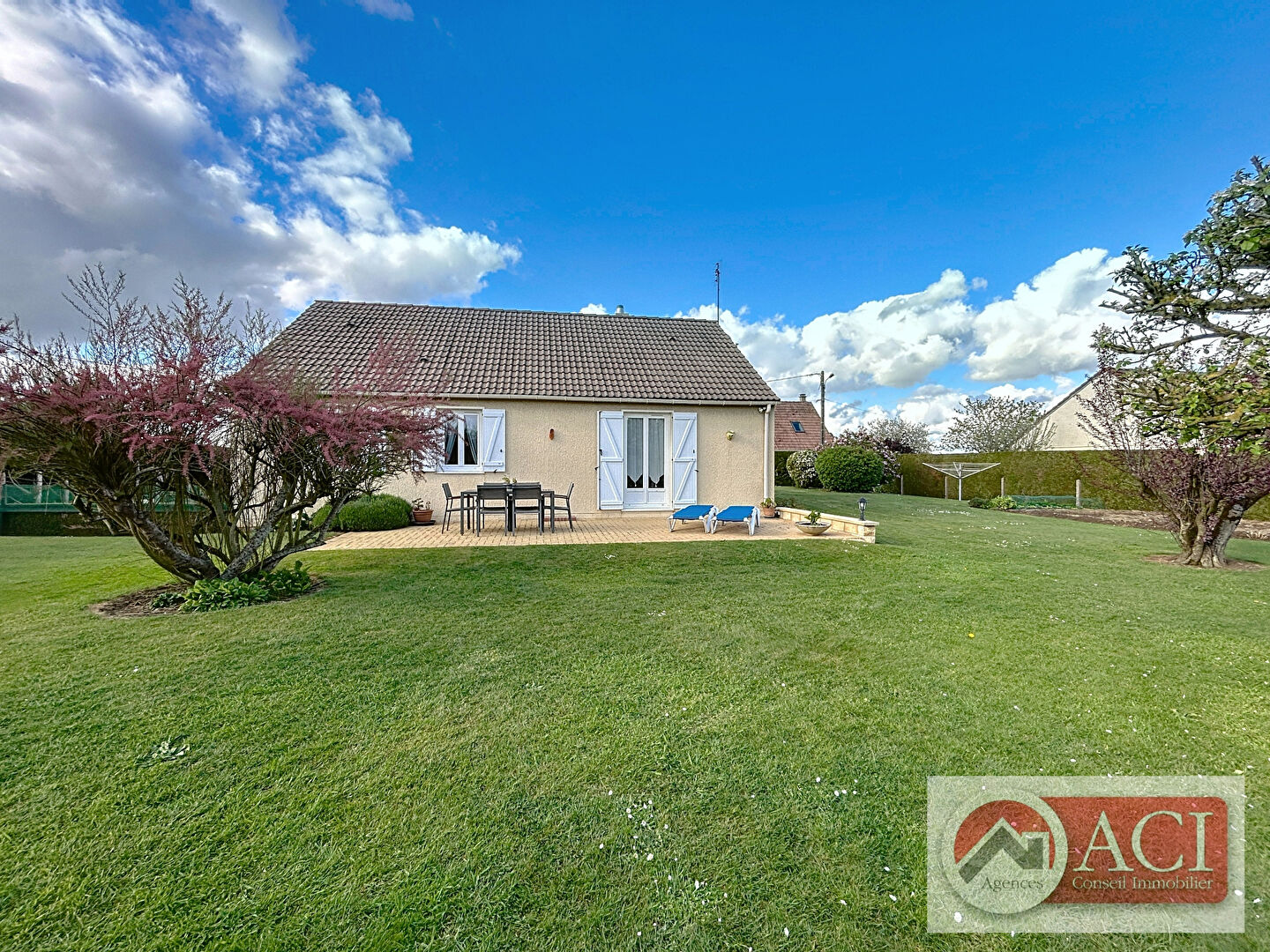 Très beau plain-pied sur un terrain de 900m² environ, comprenant : entrée, dégagement, séjour, cuisine aménagée/équipée, 3 chambres, salle de bains et WC. Sous-sol total. Aucuns travaux à prévoir, prestations impeccables.