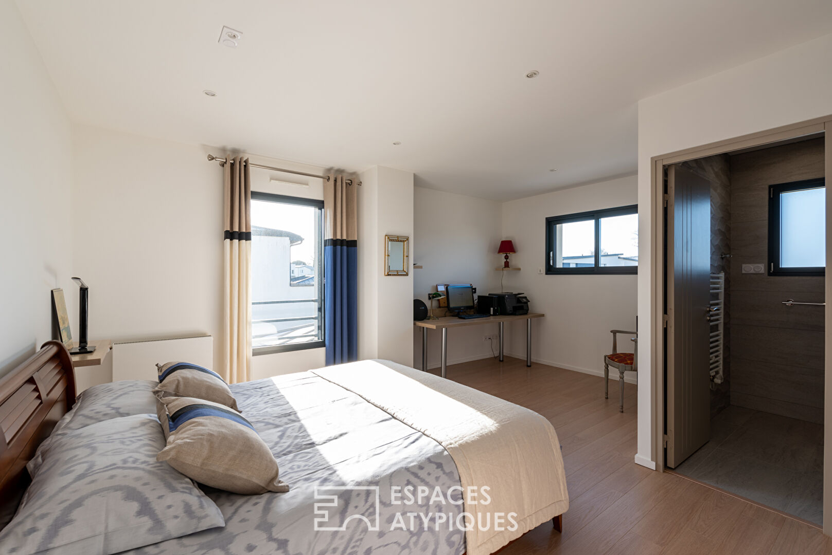 Chaleureuse maison aux volumes généreux située à proximité des commerces tout en étant au calme dans un quartier résidentiel. La grande pièce à vivre, véritable pièce maîtresse de ce bien, se tourne vers un jardin joliment paysagé et une vaste terrasse accueillante. Chaque pièce jouit de la meilleure exposition. En effet, toutes ont une vue plongeante sur cette aire verdoyante. Au rez-de-chaussée, la cuisine dinatoire, séparée mais parée d'une verrière, est claire et de belle facture. Une suite parentale de 35m² offre un confort sans pareil. Au premier étage, une belle chambre avec salle d'eau privative, deux grandes chambres et une salle d'eau. Agréable atout : un beau jacuzzi en espace clos et attenant afin d'en profiter chaque jour. pièces techniques : buanderie / chaufferie, très grand garage pouvant accueillir quatre véhicules, un grand atelier. CLASSE ENERGIE : B / CLASSE CLIMAT : B. Montant moyen estimé des dépenses annuelles d'énergie pour un usage standard, établi à partir des prix de l'énergie de l'année 2021, 2022 et 2023: entre 1330 euros et 1840 euros contact : Yveline DAVENEL Agent commercial indépendant RSAC 891217 739 téléphone 07 499 677 58 yveline.davenel@espaces-atypiques.com