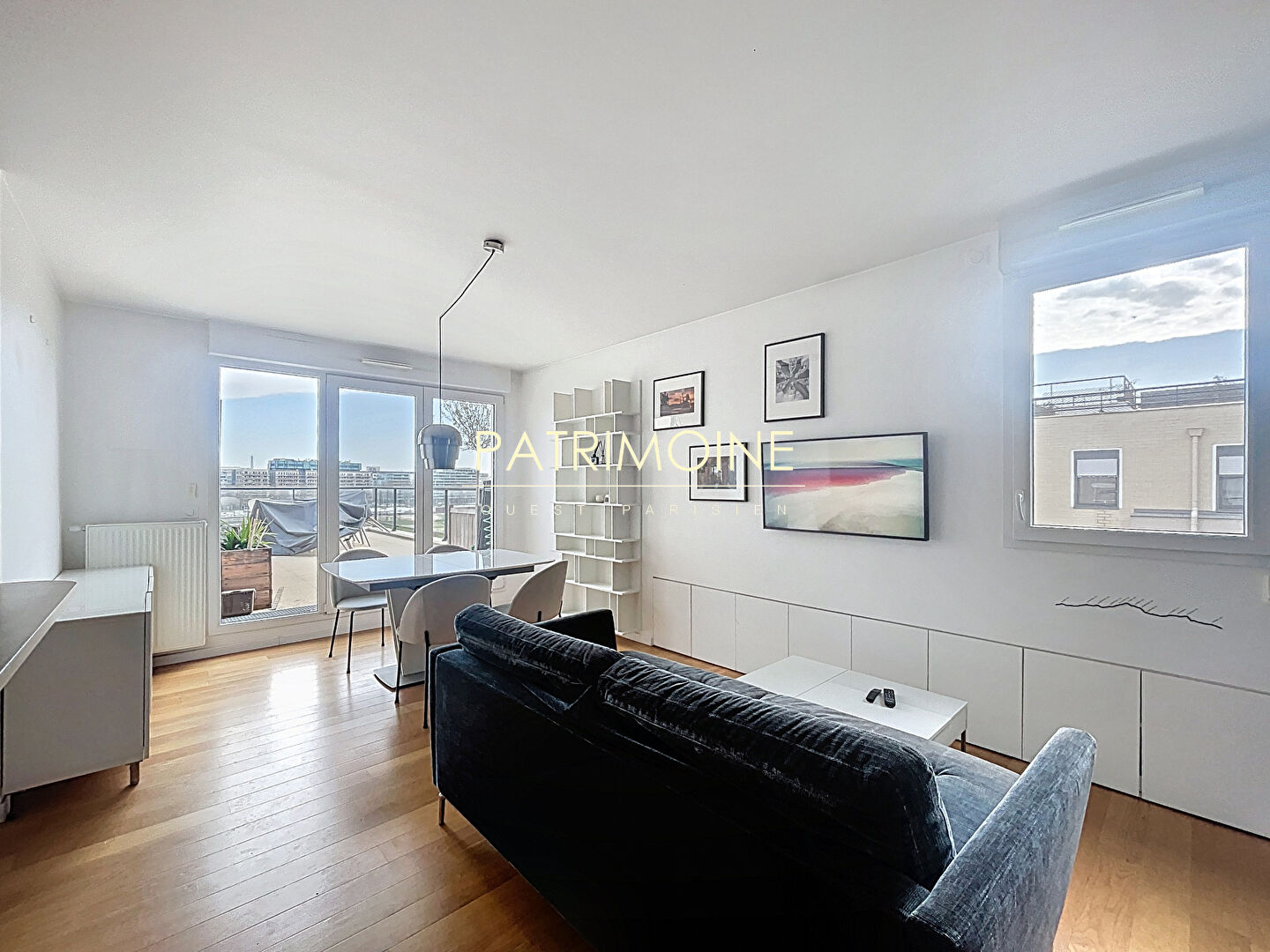 EXCLUSIVITE A proximité immédiate du Tram T2 pour La Défense, au sixième étage avec ascenseur d'une résidence de standing récente sécurisée livrée en 2020, beau trois pièces meublé de 56.04 m² avec vaste terrasse de 50.90 m² offrant : entrée, séjour lumineux de 25.22 m² donnant sur terrasse, une cuisine ouverte aménagée équipée, deux chambres, une salle de bains et wc séparés. Une place de parking en sous-sol et une cave complètent ce bien de qualité. Appartement livré
