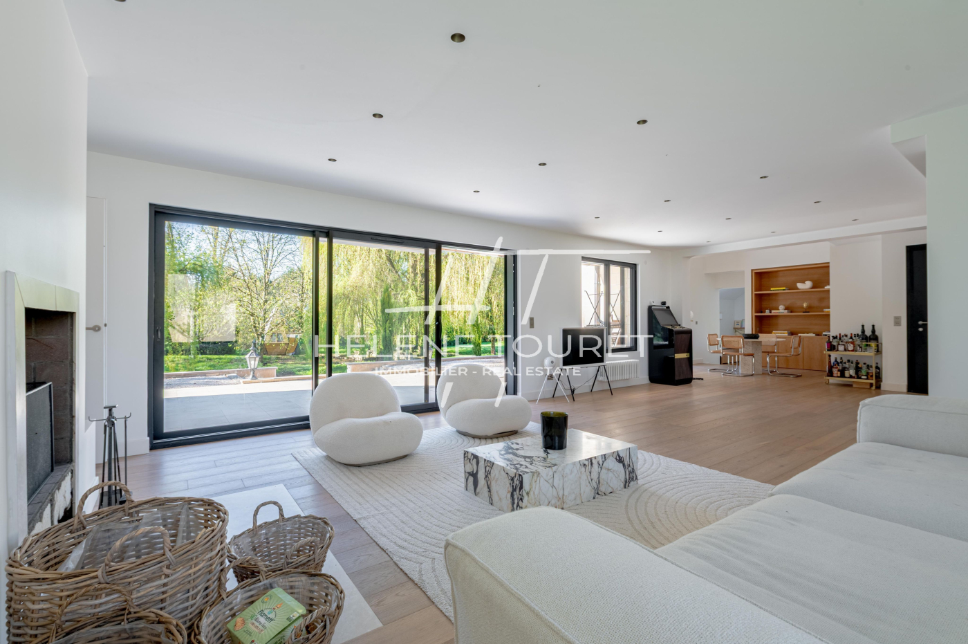 Maison d'exception dans un environnement calme et verdoyant , elle dispose d'une pièce de vie ouverte avec cuisine équipée, bureau, 3 suites avec dressing, salle de douche et mezzanine. A l'étage suite parentale avec dressing, salle de bains donnant sur toit terrasse végétalisé, en sous sol garage de 80m² salle de jeux , salle de cinéma, espace bien être avec sauna, jacuzzi et salle de sport. terrasses autour de la maison, extrêmement lumineuse, prestations haut de gamme, maison