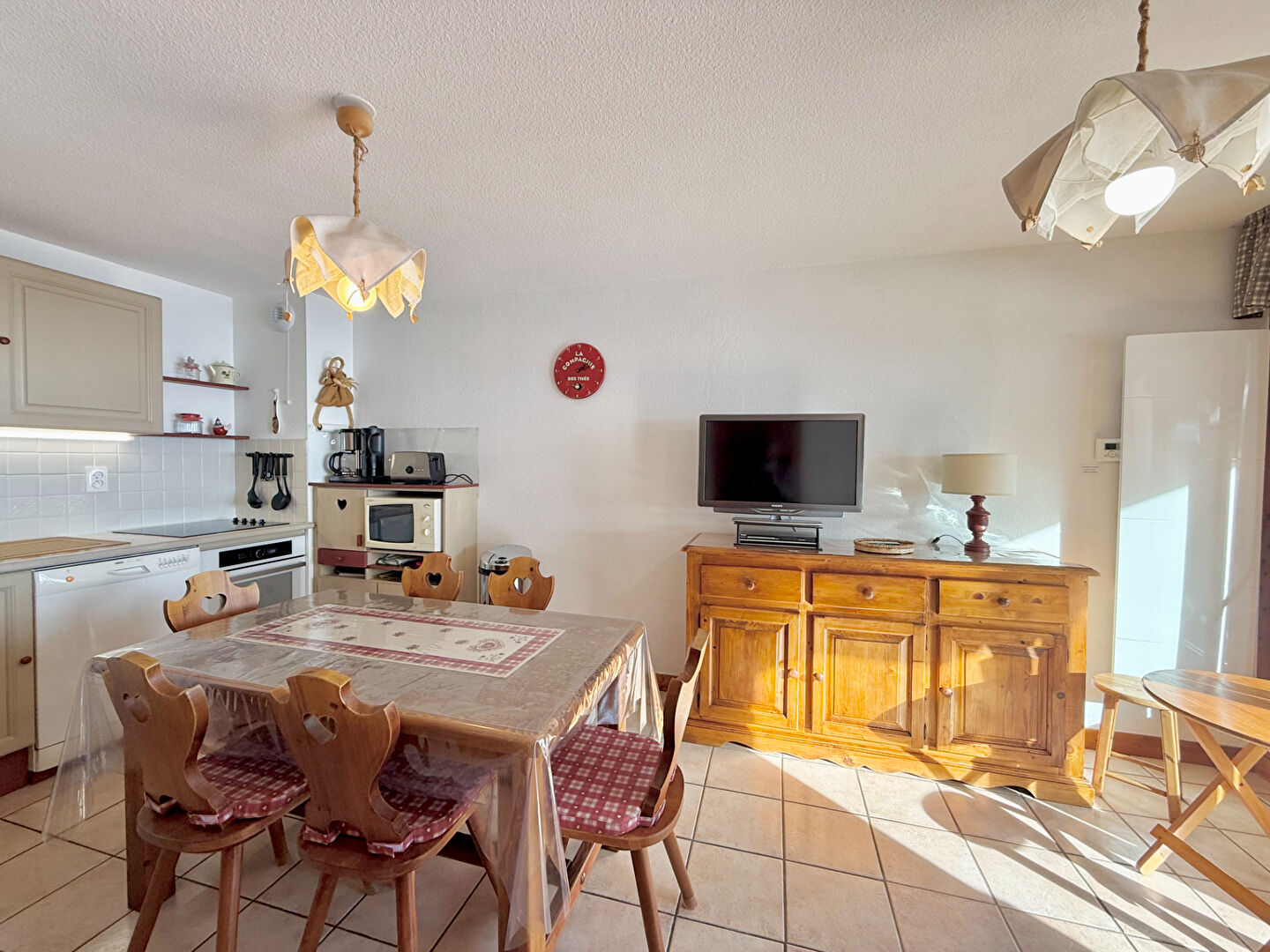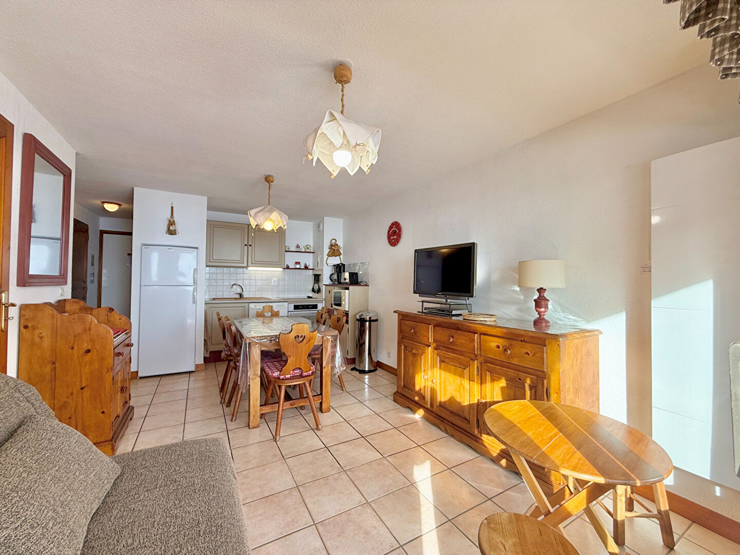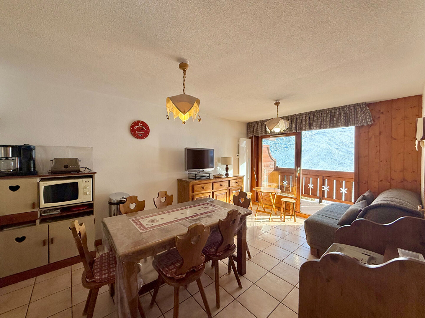Nous vous présentons ce nouvel appartement à la vente, en exclusivité, situé sur le front de neige de l'Espace Diamant. Implanté au premier étage, il bénéficie d'une belle terrasse exposée sud, offrant une agréable vue sur les montagnes et les pistes. Vous apprécierez son environnement aussi bien en été qu'en hiver. L'appartement se compose d'une belle pièce de vie avec cuisine ouverte équipée, d'une chambre double, de deux coins montagne, d'une salle de bains et de toilettes séparées. Il offre de nombreux rangements, dispose d'une machine à laver, d'un chauffe-eau récent et est raccordé à la fibre optique. Le bien est vendu avec un casier à skis et un garage. Plus d'informations en agence. (6.00 % honoraires TTC à la charge de l'acquéreur.) Copropriété de 33 lots (Pas de procédure en cours). Charges annuelles : 865.67 euros.