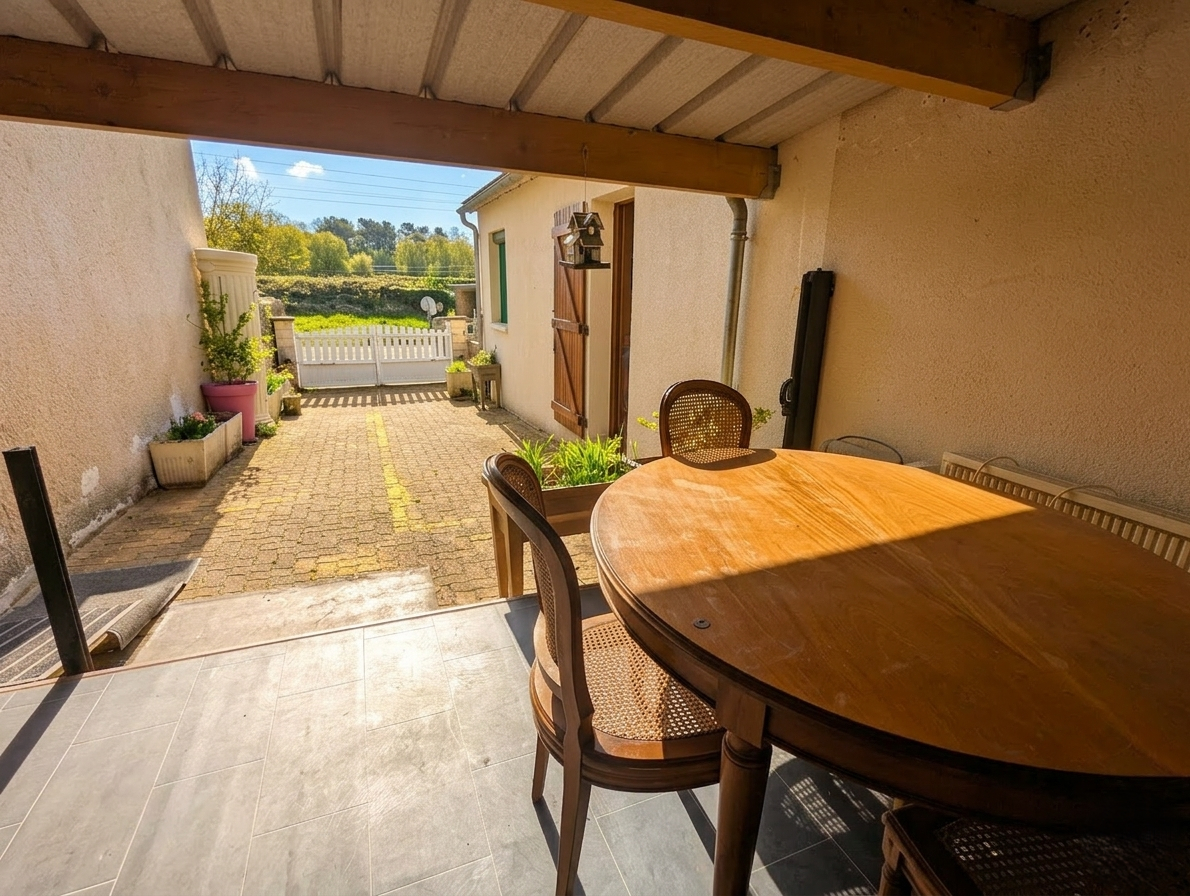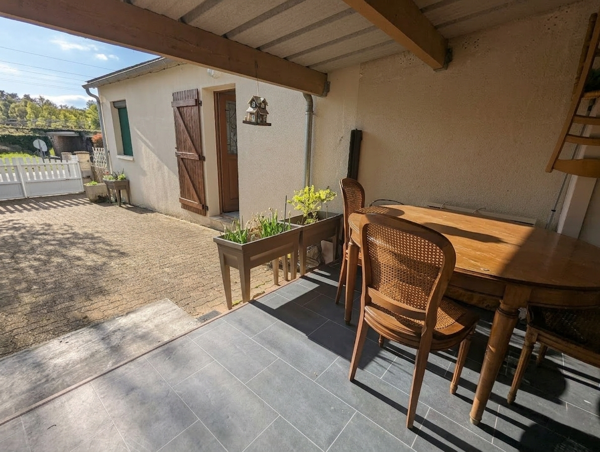 Située sur la commune de Chisseaux, à proximité de Bléré et des axes reliant Tours et Amboise, cette maison de bourg d'environ 83 m² habitables offre une configuration rare et évolutive. Issue de la réunion de deux habitations aujourd'hui communicantes, elle permet plusieurs projets : création de deux logements indépendants pour un investissement locatif, premier achat avec possibilité de louer une partie afin d'alléger le remboursement du crédit, ou encore réunification en une seule habitation familiale pouvant atteindre environ 115 m² grâce à l'aménagement de la cave troglodyte. La maison se compose d'une entrée, d'une cuisine, d'une salle d'eau, d'un WC indépendant, d'une chambre, d'une pièce de transition pouvant faire office de chambre, d'un séjour avec insert et cuisine ouverte aménagée, ainsi que d'un étage desservant un palier, une chambre, une salle de bains et un WC. Elle dispose de plusieurs caves troglodytes, dont une cave principale d'environ 30 m² équipée d'un insert, d'une porte-fenêtre et d'une fenêtre avec volets, ouvrant sur une terrasse couverte et offrant un véritable potentiel d'agrandissement. Une seconde cave indépendante d'environ 60 m² ainsi qu'une dépendance complètent l'ensemble. A l'extérieur, le bien bénéficie d'une cour à l'avant de chaque parcelle, d'un terrain situé en face permettant le stationnement, de deux accès distincts et de deux portails. Sur le plan technique, le chauffage est assuré par des radiateurs électriques à fluide caloporteur, le bien est raccordé au tout-à-l'égout, équipé d'une VMC et de la fibre optique. Les toitures en ardoise ont été refaites et isolées, les menuiseries sont en bois double vitrage et les enduits ont été rénovés. La taxe foncière s'élève à 440 euros. Un bien atypique, offrant de nombreuses possibilités, idéal pour un premier achat malin ou un investissement rentable, à découvrir sans tarder. Contact : Carole MOUTAILLIER : RSAC 2022AC00205 Les informations sur les risques auxquels ce bien est exposé sont disponibles sur www.georisques.gouv.fr (3.23 % honoraires TTC à la charge de l'acquéreur.)