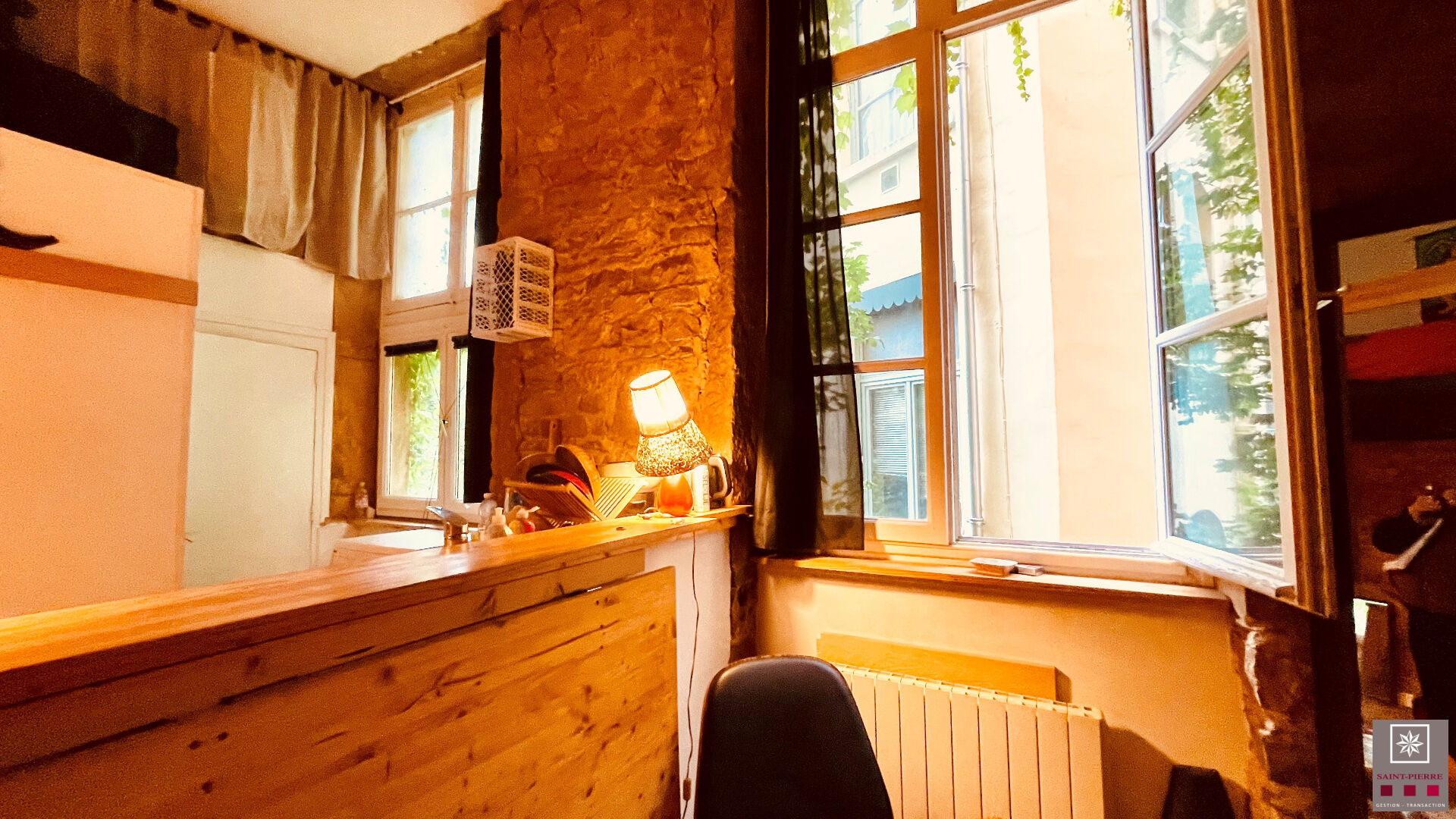 Lyon 1er, Secteur Chartreux : Appartement de type studio au 1er étage d'un immeuble du 19ème sans ascenseur, avec chambre en mezzanine, de conception "serrurerie métallique", orienté sur la cour intérieure. Constitué d'une pièce à vivre sous mezzanine avec cuisine dans le prolongement et salle d'eau avec WC indépendant, deux fenêtres orientées sur la cour intérieur. Appartement vendu loué. 147 000 euros Contacter Christian MAILLET Régie Saint-Pierre. Copropriété de 16 appartements : Provisions mensuelles de charges 50 euros fonds travaux loi Alur inclus. Copropriété de 16 lots - dont 16 lots habitation. (Pas de procédure en cours). Charges annuelles : 40 euros.