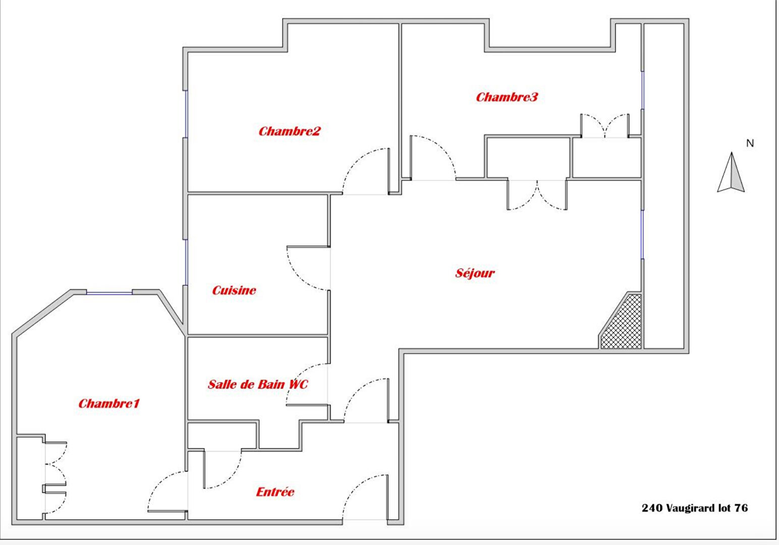 Rue de Vaugirard, Métro Volontaires, bel immeuble ancien de standing avec gardien, ascenseur, au 5ème étage, appartement traversant composé d'une entrée, séjour, cuisine aménagée, salle de bains wc, trois chambres, balcon sur rue, chauffage individuel gaz, cave en sous-sol