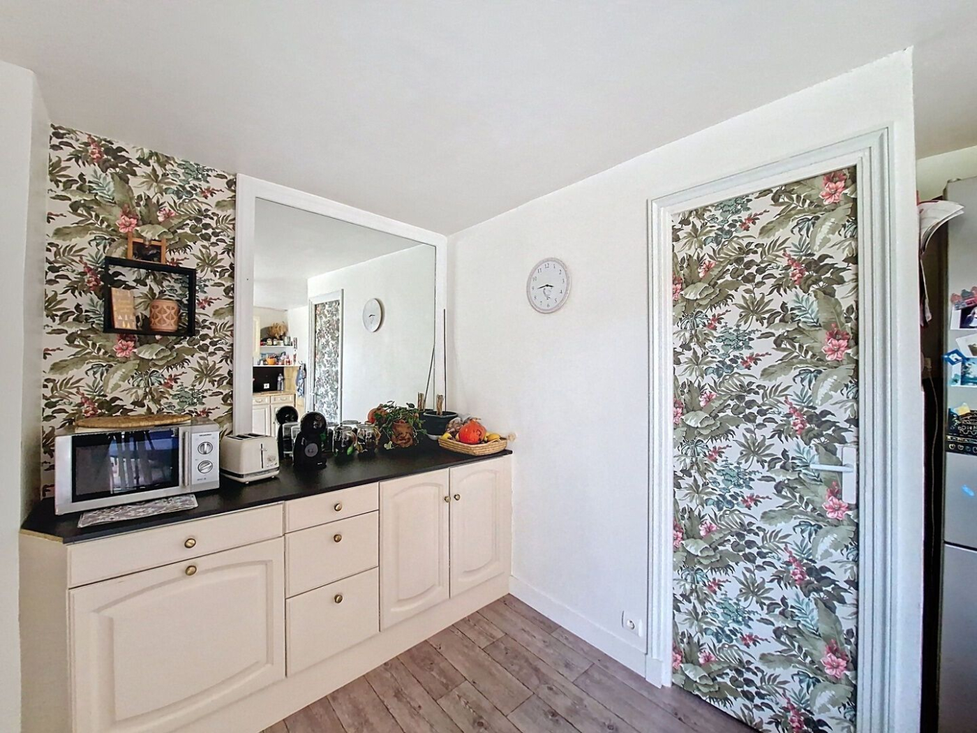 À l'intérieur, la pièce de vie s'impose comme le coeur de la maison. Environ 47 mètres carrés baignés de lumière, traversés de poutres apparentes et réchauffés par un poêle à bois qui diffuse une chaleur douce. Depuis le séjour, on accède à une terrasse intime, à l'abri des regards, où l'on imagine déjà les petits déjeuners d'été et les fins de journée paisibles. La cuisine aménagée, conviviale et pratique, prolonge naturellement cet espace de vie, créant une belle harmonie entre authenticité et confort du quotidien.