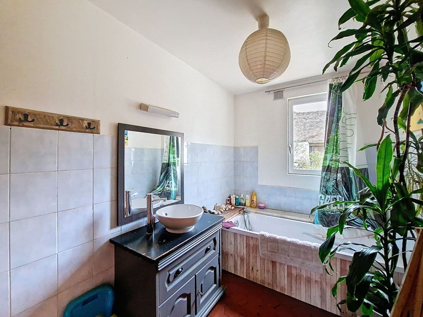 L'espace nuit se compose de deux grandes chambres en enfilade, dont l'une s'ouvre directement sur le jardin. La salle de bain, lumineuse, ainsi qu'un cellier, une buanderie et des toilettes séparées complètent ce niveau de plain-pied, pensé pour un quotidien simple et agréable.