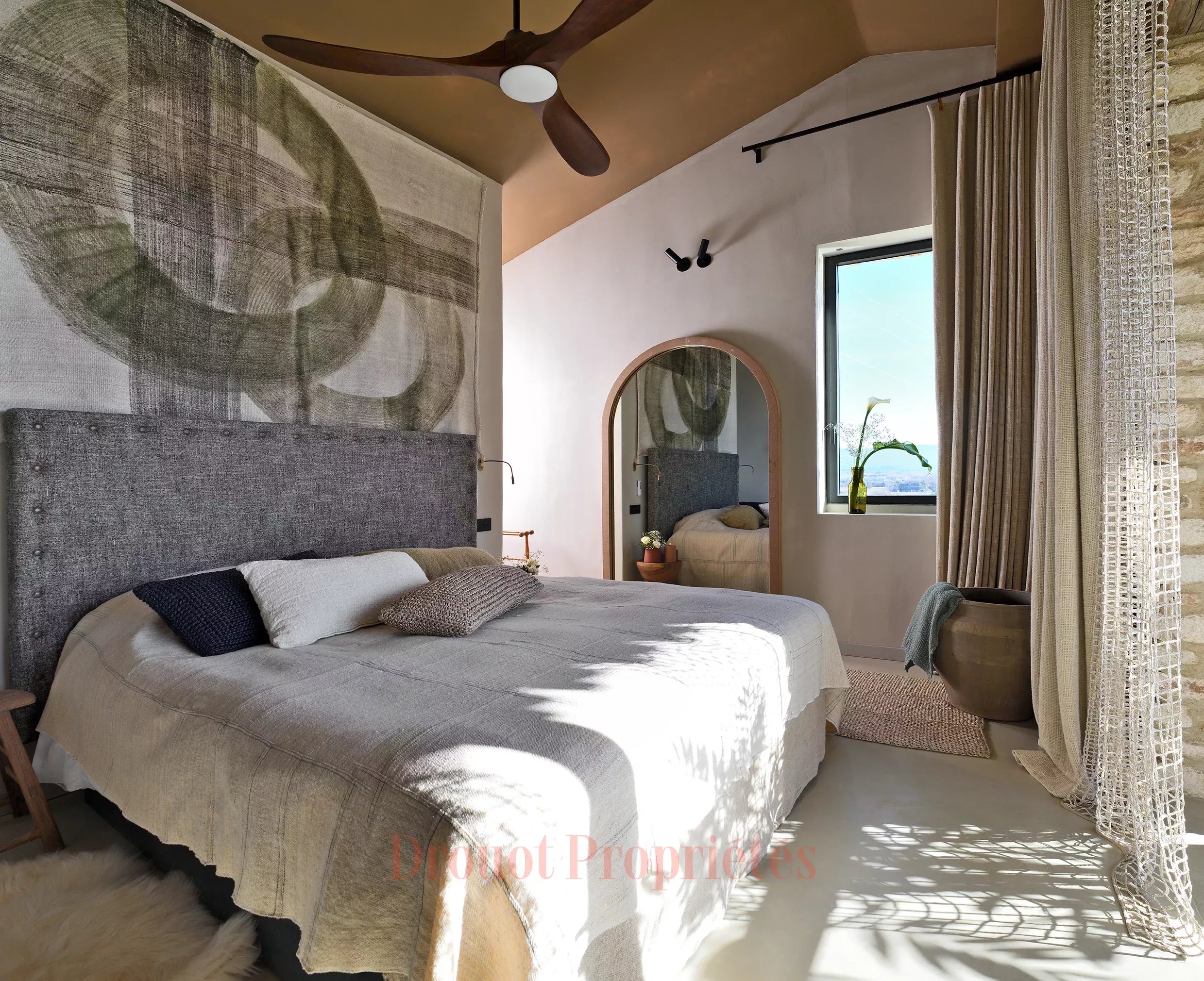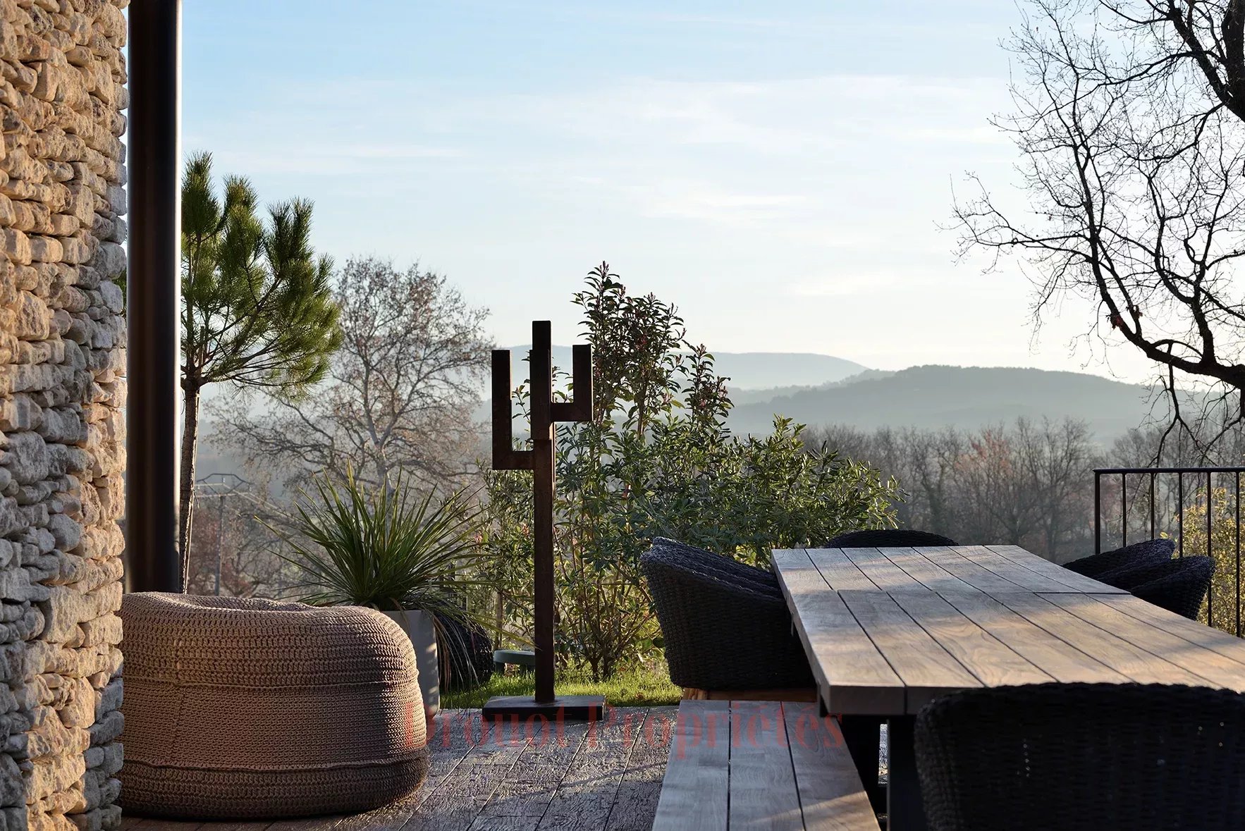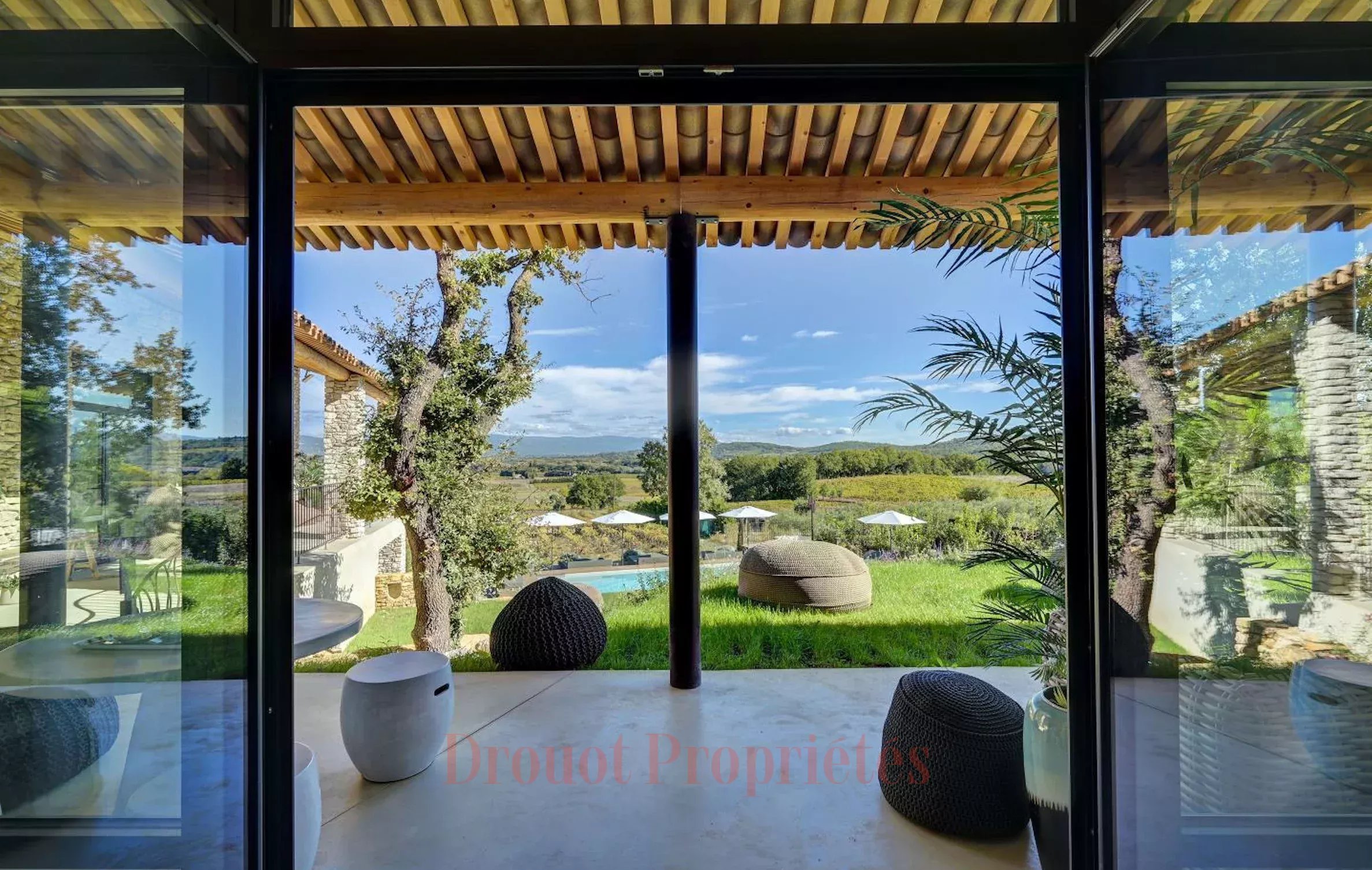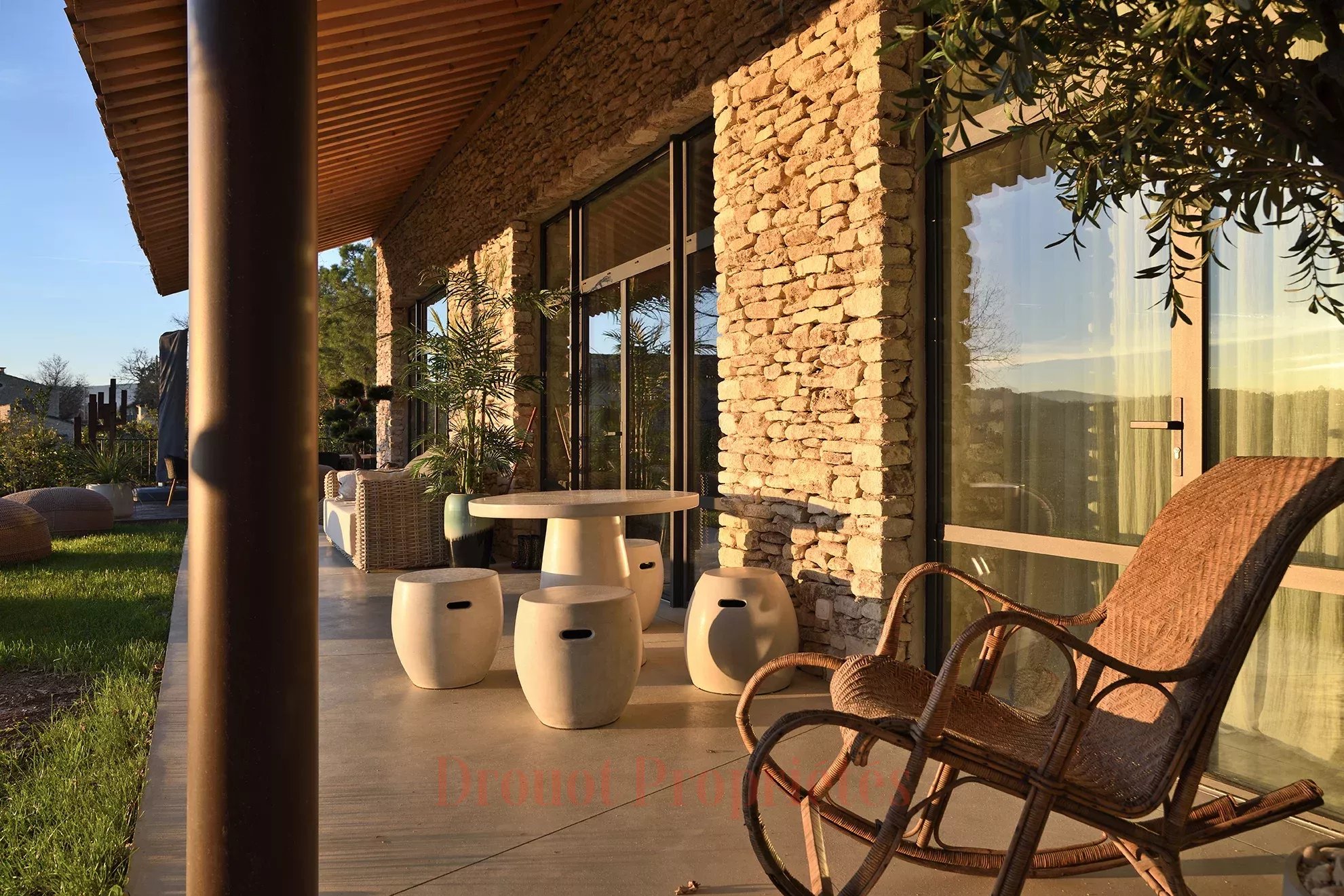 EXCLUSIVITE - MAISON CONTEMPORAINE - VUE - CALME ABSOLU PARFAIT POUR MAISON D'HÔTES Ce bien vous est proposé en vente aux enchères interactive par l'intermédiaire de Drouot.immo. Niché au coeur des vignes à quelques minutes d'Avignon et de sa gare TGV, à proximité immédiate du prestigieux village de Gordes, maison contemporaine construite à l'ancienne en pierres de Bories offrant un cadre de vie exceptionnel, empreint de calme et d'authenticité. Construit par un architecte en 2023 avec des matériaux de très haute qualité et des prestations haut de gamme, la maison aux 6 suites avec ses immenses baies vitrées à la vue exceptionnelles se déploie sur 188 m² habitables, harmonieusement répartis sur deux niveaux. Le rez-de-chaussée se compose d'une élégante salle à manger avec cuisine ouverte, d'un salon chaleureux avec cheminée et de quatre superbes suites climatisées, toutes pensées pour un confort optimal. Le rez-de-jardin accueille deux suites supplémentaires, et une immense salle de stockage. De larges terrasses aux expositions multiples prolongent les espaces de vie et permettent de profiter pleinement de chaque instant de la journée. L'ensemble s'étend sur un terrain paysager d'environ 2000 m², agrémenté d'une piscine chauffée (9 x 4m) et bénéficiant d'une vue exceptionnelle sur le Luberon. Les informations sur les risques auxquels ce bien est exposé sont disponibles sur le site Géorisques : www.georisques.gouv.fr La participation à la vente interactive de ce bien sur Drouot.immo est soumise à agrément préalable.