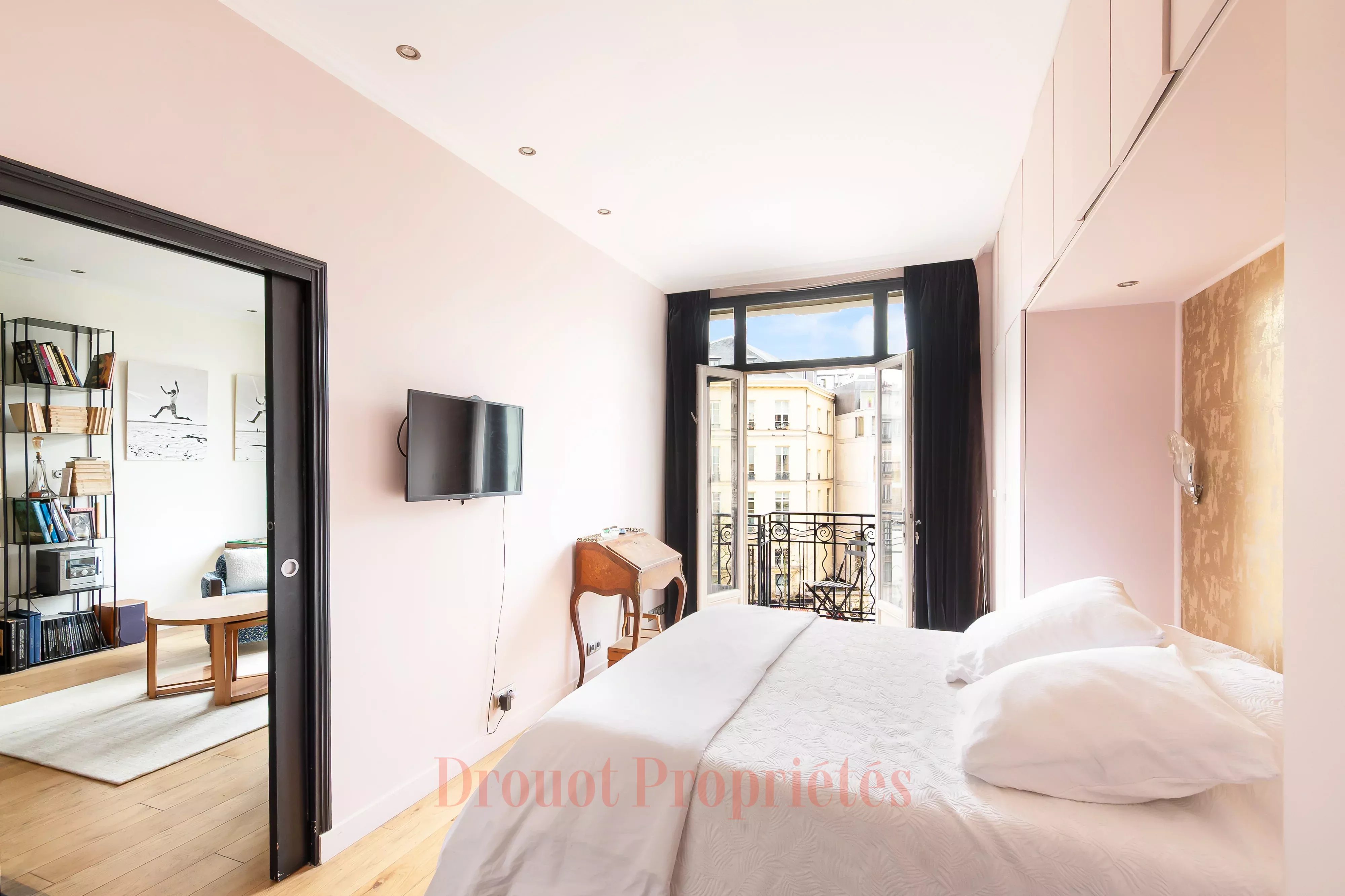 APPARTEMENT DEUX PIECES - PLEIN SUD Situé au coeur du IXe arrondissement, au troisième étage d'un superbe immeuble Art Déco récemment ravalé, spacieux deux pièces rénové. Ce bien se compose d'un grand séjour orienté plein sud, d'une belle chambre avec nombreux rangements, d'une cuisine meublée et équipée et d'une grande salle de bains avec toilettes. Appartement bénéficiant de très beaux volumes et de grandes baies vitrées ouvrant sur deux petits balcons.