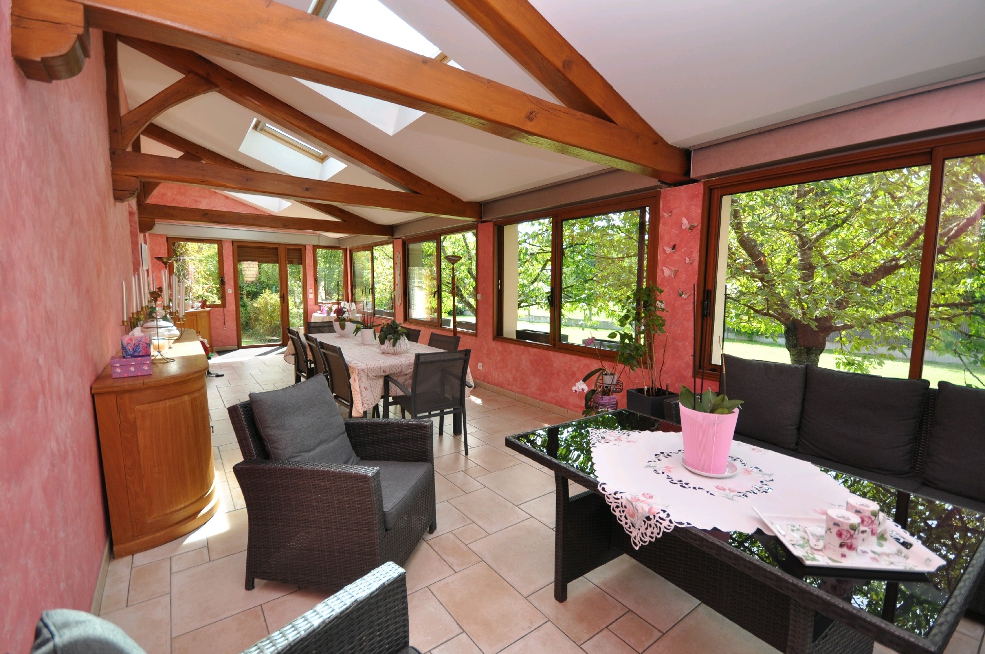 Maison de caractère qui allie charme, confort et potentiel, située sur un vaste terrain de 2906 m², idéal pour une grande famille ou un projet professionnel. Avec une surface habitable d'environ 300 m² (2 salons, 6 chambres possibles, 2 sde, une véranda...), cette maison sera vous séduire par ses volumes généreux, ses matériaux nobles (pierres / poutres / petites tuiles..) et son ambiance chaleureuse. On est tout d'abord accueilli par une jolie entrée cathédrale qui donne accès au séjour double de 50 m² agrémenté d'une cheminée, une salle à manger attenante qui fait le lien avec la grande cuisine traditionnelle aménagée et équipée (en chêne massif) de 21 m², wc. La seconde partie du rdc (qui pourrait être indépendante) se compose d'un 2 ème salon de 25.5 m², une cuisine aménagée, une très jolie véranda de 42 m² offrant une vue dégagée sur le terrain, une chambre de 23 m², une salle d'eau entièrement réactualisée avec une douche italienne, wc. A l'étage, une grande pièce en mezzanine de 28 m² au sol (4 m de hauteur) donne une belle sensation de volume et distribue 4