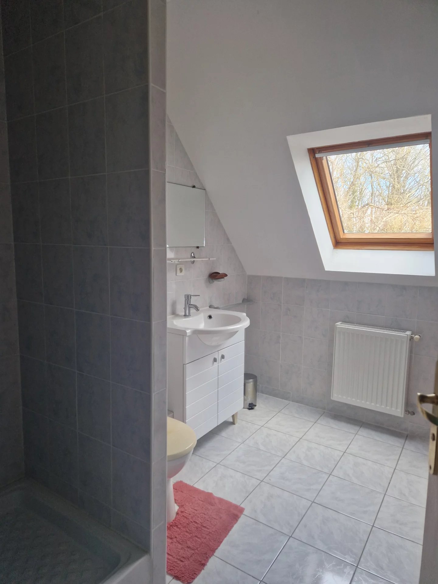 A l'étage: dégagement desservant 4 chambres, salle de douche aménagée.