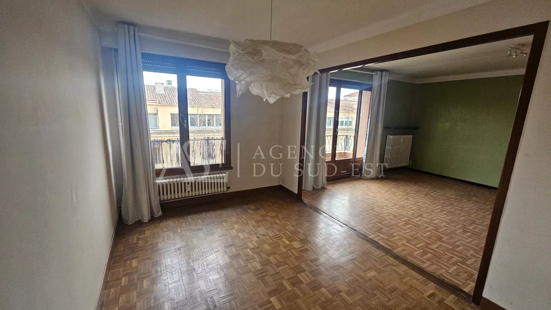 Appartement de type 3/4 au 5ème étage avec ascenseur et garage en centre ville. Comprenant: un hall d'entrée, un double séjour, une cuisine séparée, 2 chambres, une salle de bains, wc.