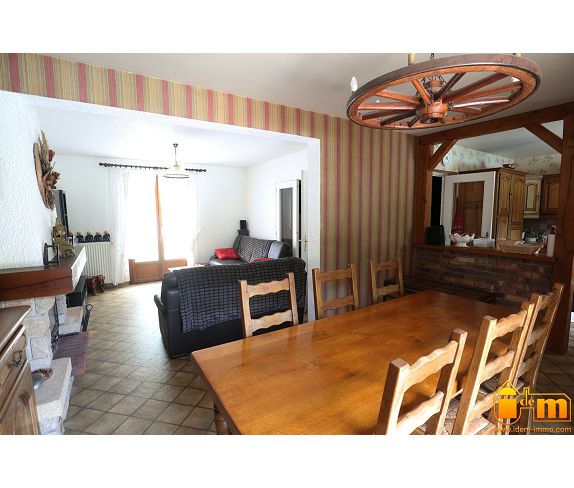Au rez de chaussée, une entrée avec dégagement et penderie, séjour de 32 m² avec insert (récupérateur de chaleur), cuisine ouverte aménagée et équipée, salle de bains, W-C indépendant, une chambre.