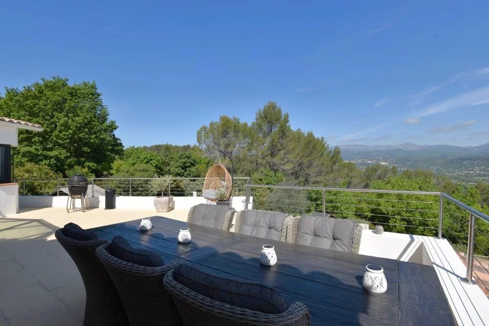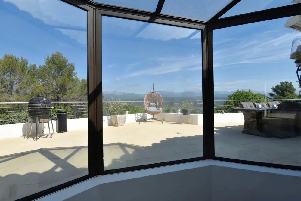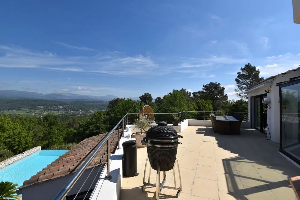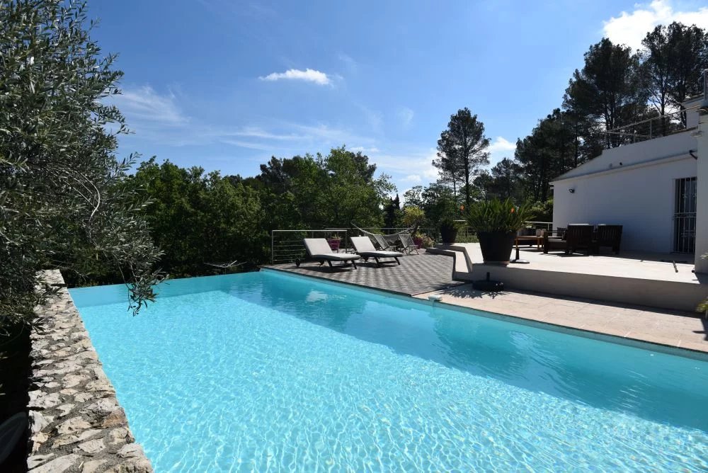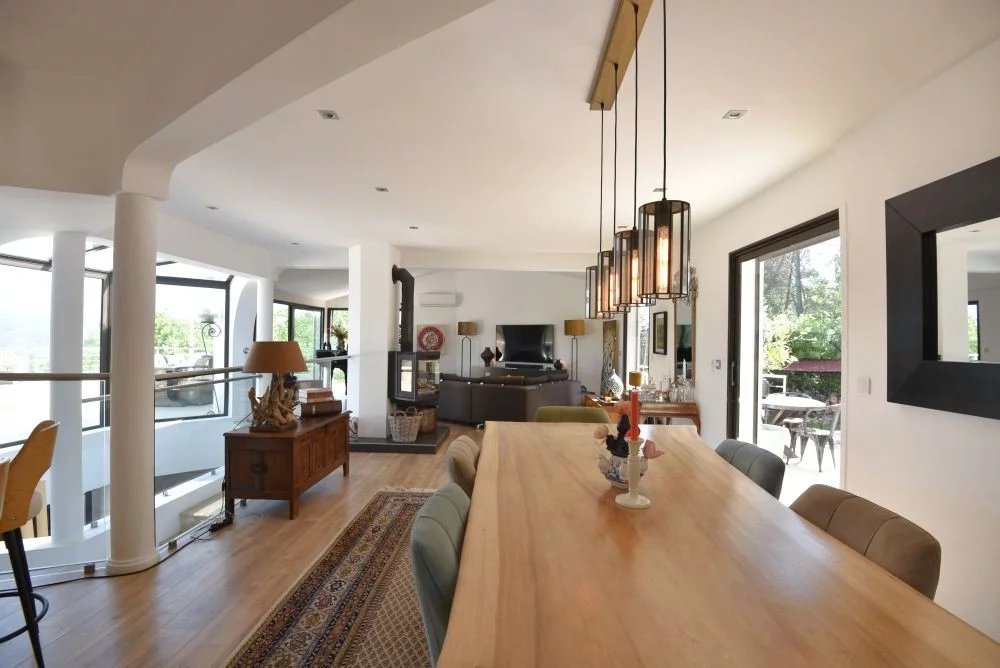 Villa contemporaine avec vue panoramique – 291 m² – Piscine à débordement – Terrain 7 264 m² – Tourrettes (83440) – Environnement naturel exceptionnel Nichée au cœur d’un environnement préservé, cette villa contemporaine offre une vue spectaculaire sur la vallée et les villages du Pays de Fayence. Dès l’entrée, les volumes, la lumière et les lignes élégantes créent un effet “wow” immédiat. Les larges ouvertures effacent la frontière entre intérieur et extérieur, offrant une expérience de vie tournée vers le paysage. AGENCEMENT OPTIMISÉ Niveau principal : Vaste espace de réception Séjour lumineux avec accès terrasse Cuisine ouverte entièrement équipée Grande terrasse avec vue dominante Rez-de-jardin (espace nuit) : Suite parentale avec dressing + salle de bains 2 chambres avec salles d’eau privatives Bureau 1 chambre indépendante avec salle d’eau (idéal invités) ANNEXES & POTENTIEL Buanderie Cave Garage aménagé en studio de musique : Possibilité salle de sport, bien-être ou atelier EXTÉRIEURS EXCEPTIONNELS Piscine à débordement chauffée avec vue Terrain arboré de 7 264 m² Espaces de détente et de réception Immersion totale dans la nature Imaginez vos soirées face au coucher de soleil, votre piscine semblant se fondre dans l’horizon, et le silence absolu… Une propriété idéale pour se ressourcer, recevoir et profiter d’un cadre de vie rare. Bien d’exception sur le secteur. Contactez nous dès maintenant pour une visite privée.
